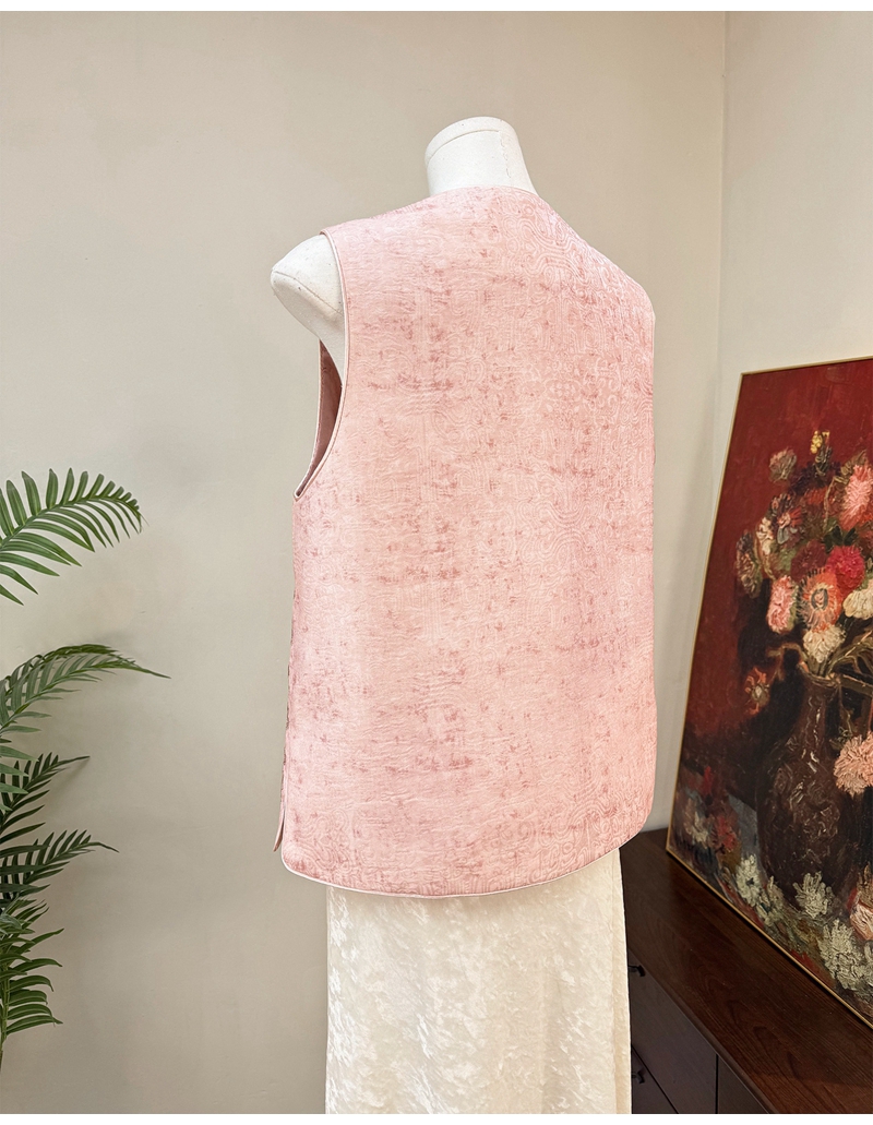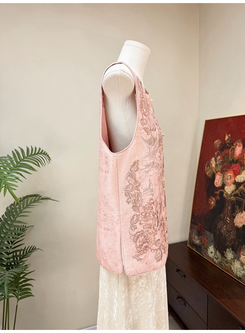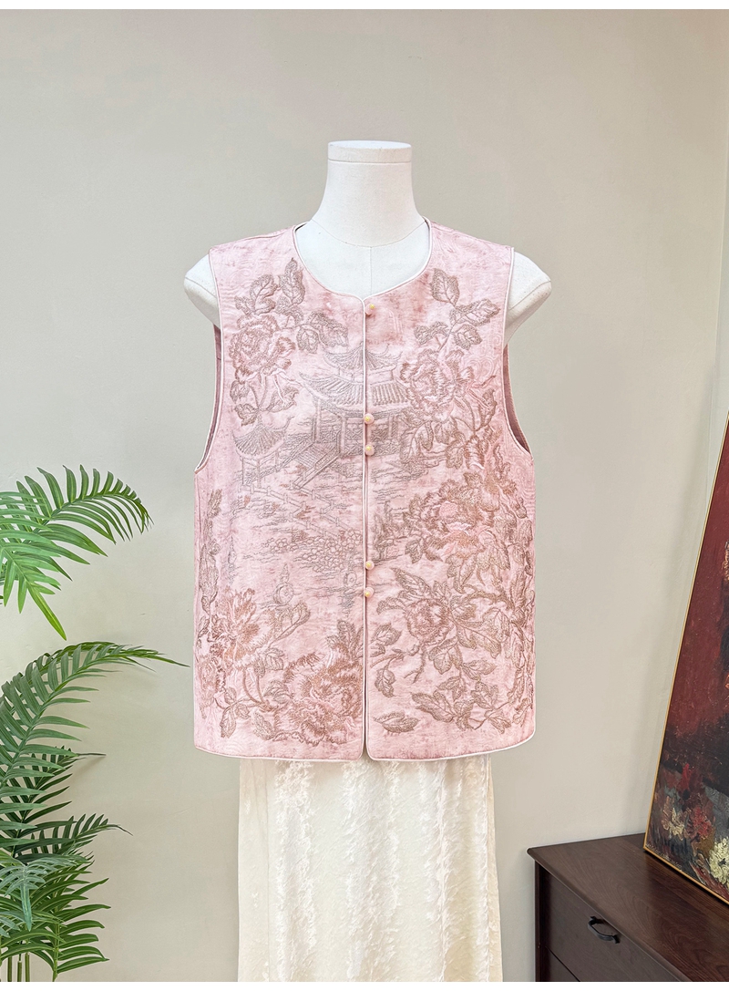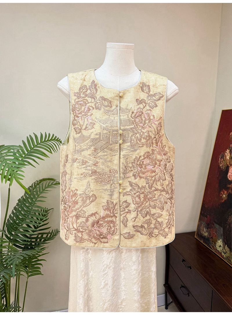 新中式重工刺绣圆领单排扣马甲