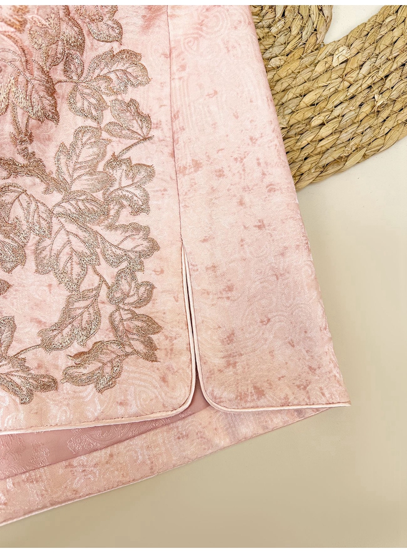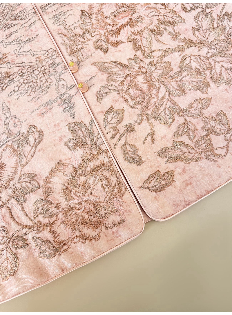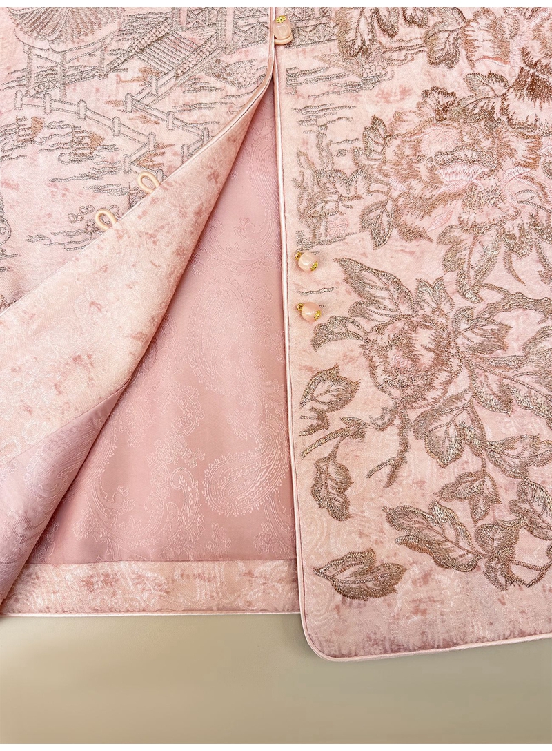 新中式人丝提花圆领长袖单排盘扣外套
