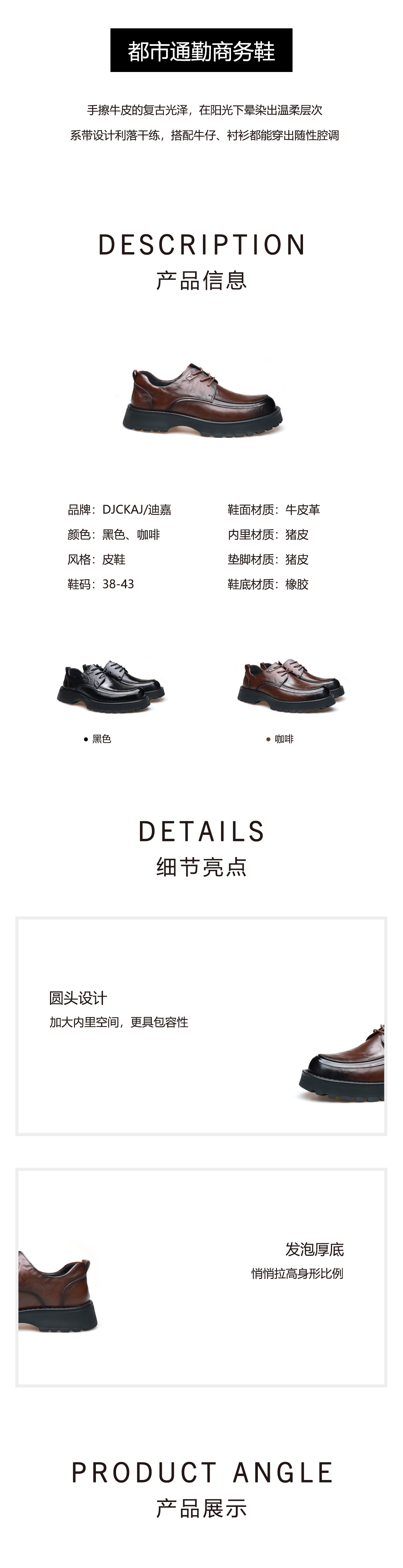 豪麟名鞋奥莱迪嘉男鞋皮鞋牛皮革DJBDO61MP202黑色 原价1660元