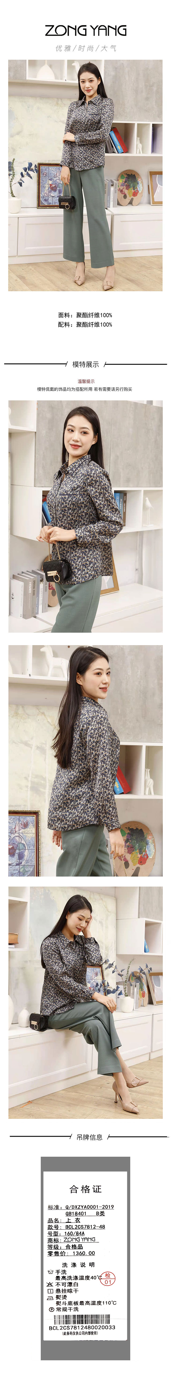 宗洋直身款印花衬衫BCL2CS7812-48