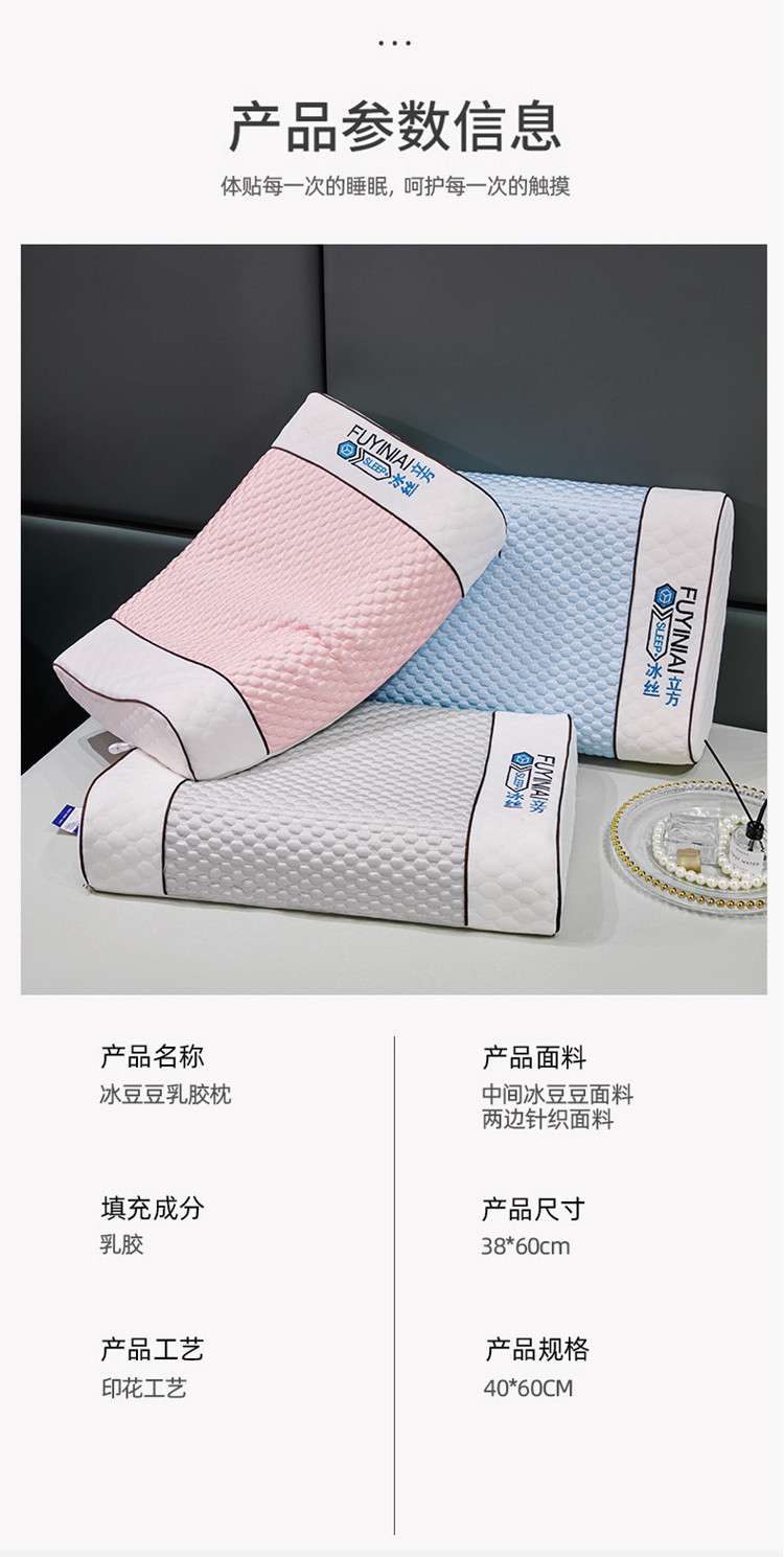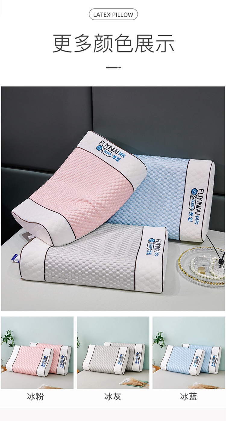 夏季冰丝乳胶枕泰国凉感按摩颗粒豆豆枕芯单双人乳胶枕头礼品枕夏天凉爽枕头