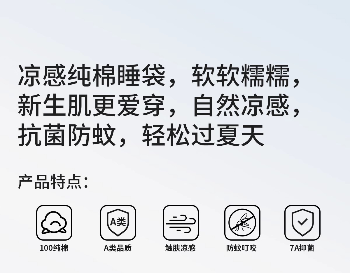 科巢婴儿睡袋夏季纯棉儿童宝宝分腿春秋防踢被四季通用家居连体衣