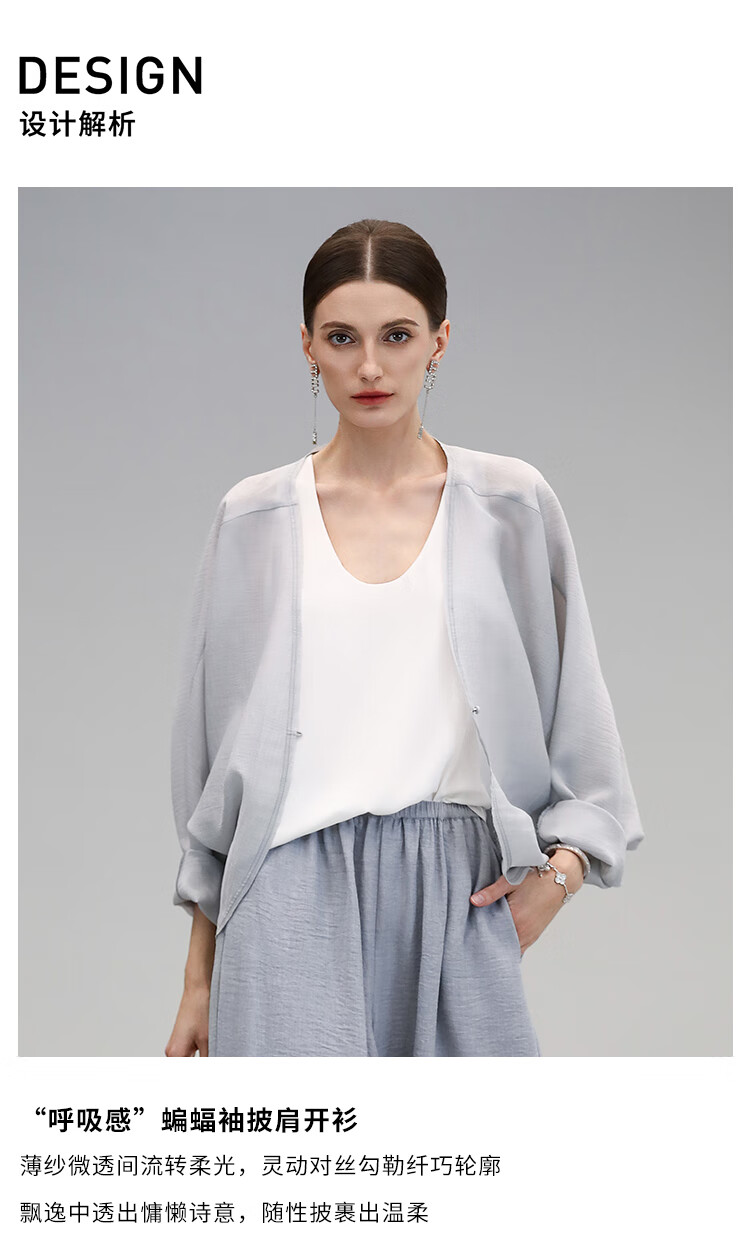 COCOBELLA织带贴边对丝小开衫女春夏轻盈遮阳短外套SC7077