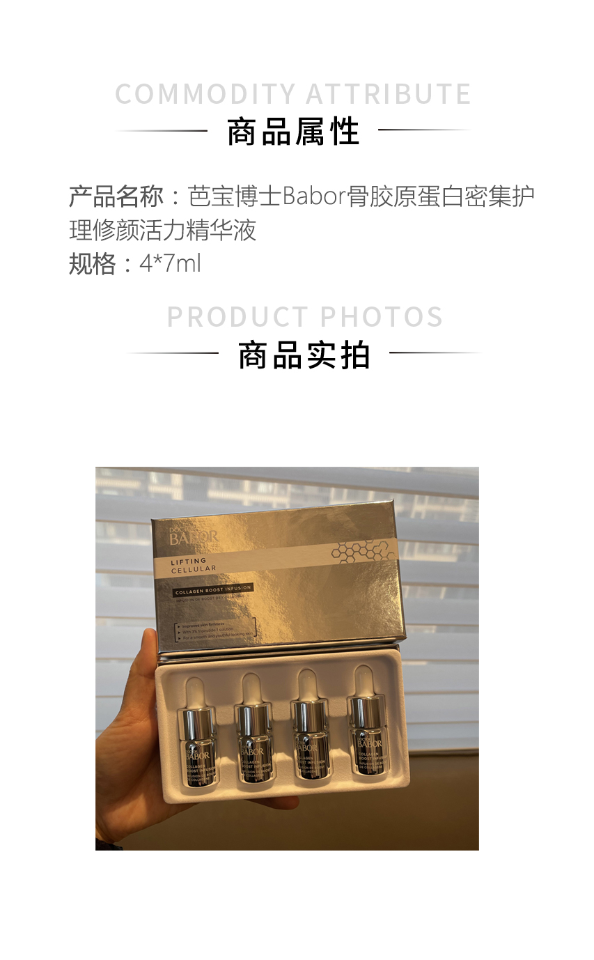 【清仓好价】BABOR骨胶原蛋白密集护理修颜活力精华液4*7ml(限23.3)