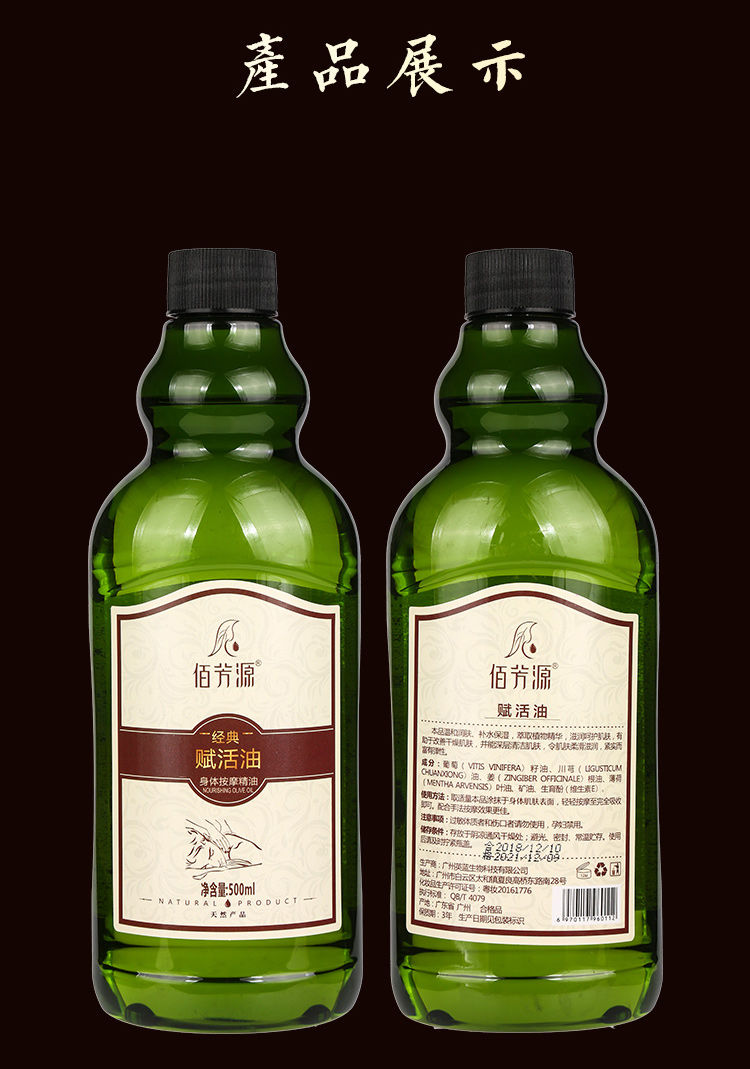 佰芳源赋活油按摩油袪寒通络精油全身体肩颈刮痧*推背包邮