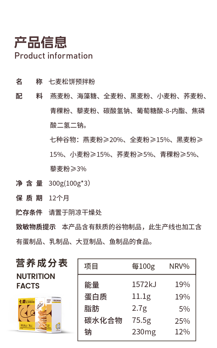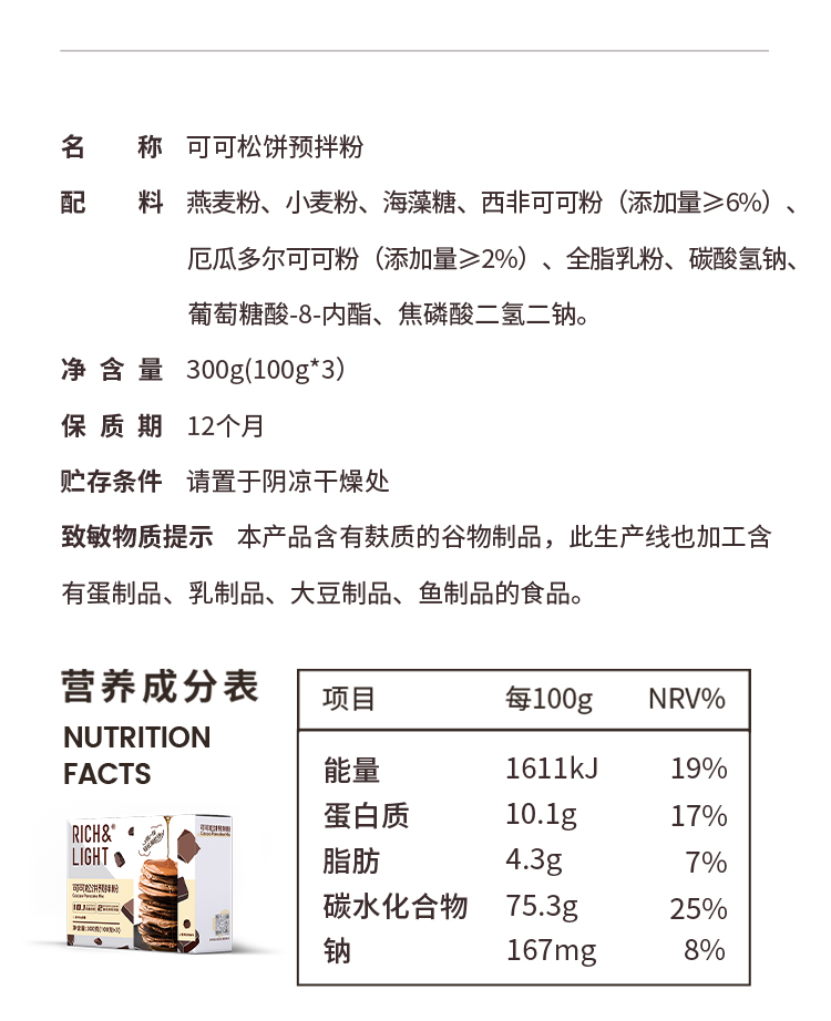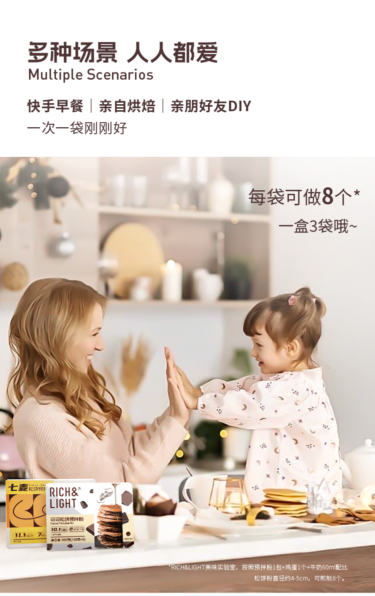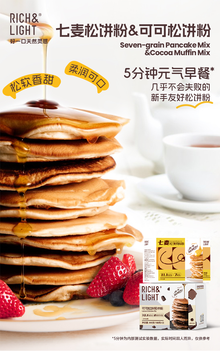 【RICH&LIGHT】 七麦松饼粉/可可松饼粉 300g/袋(1袋/2袋装可选)