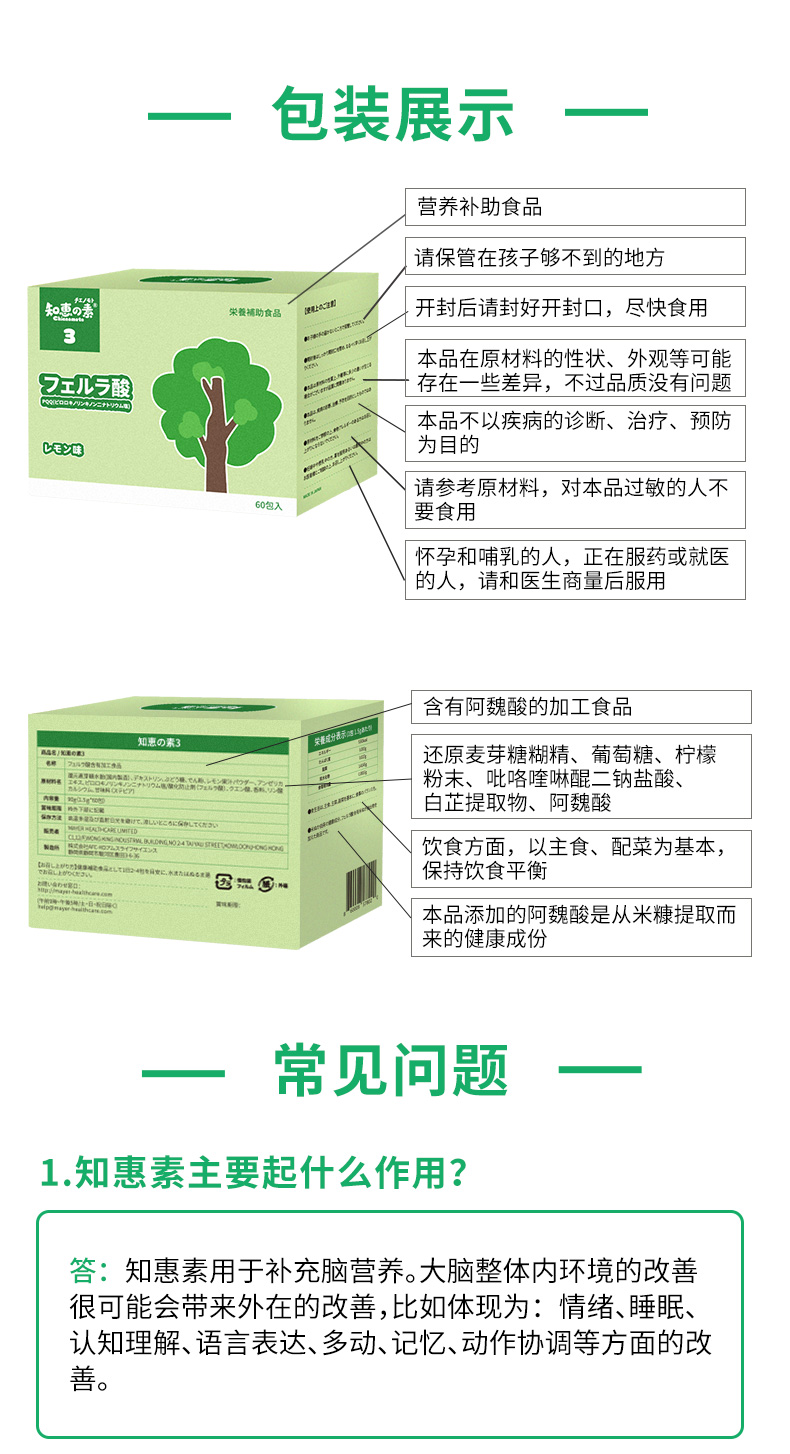 - 日本进口营养食品 “知恵の素” (中文译名:知惠素)系列专卖,源自天然植物米糠、欧白芷、大豆等,补充脑营养,改善脑血流,优化脑功能!