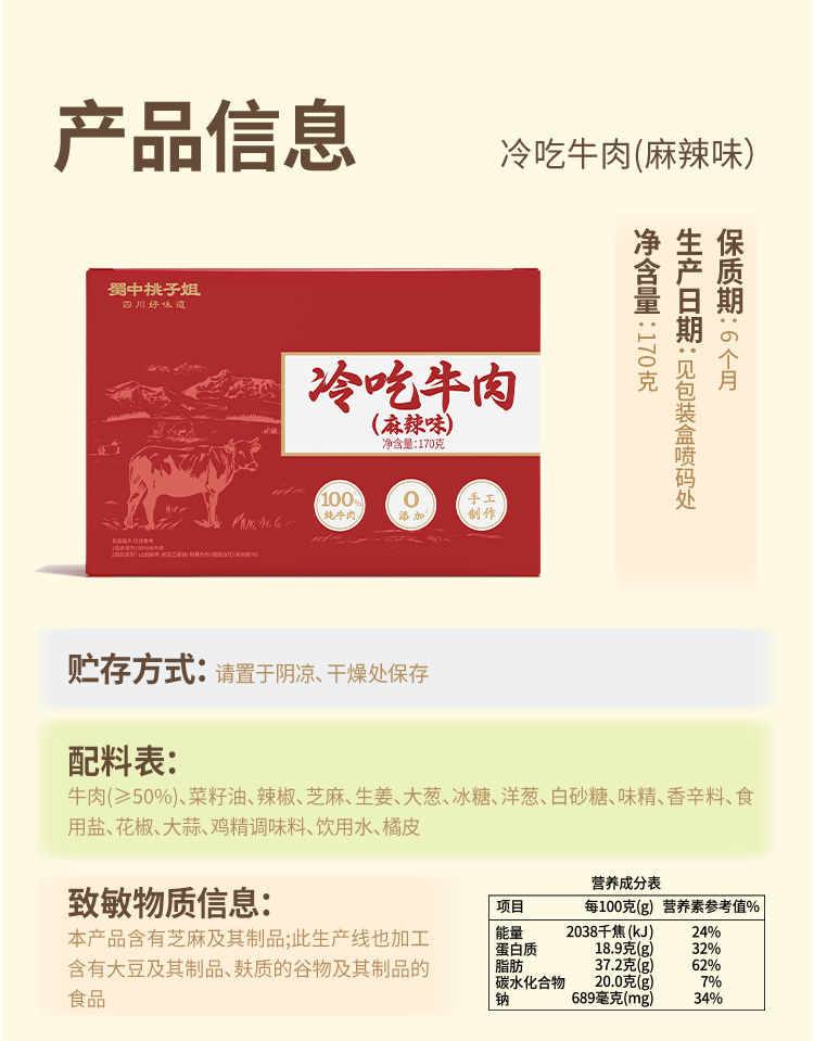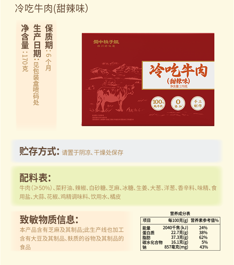 【自营】冷吃牛肉170g*2盒装(麻辣/甜辣)
