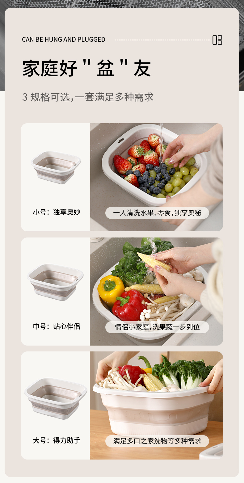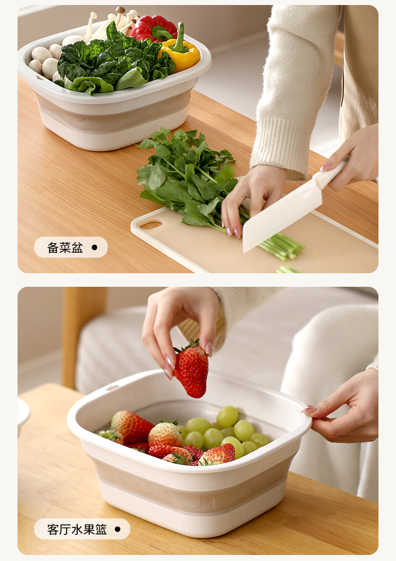 FaSoLa折叠伸缩沥水篮厨房洗菜篮水果蔬篮双层家用沥水神器
