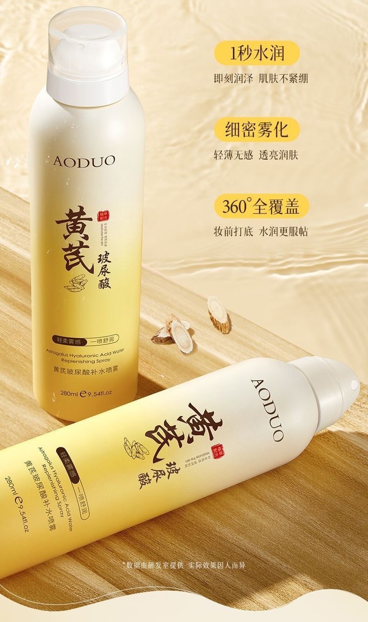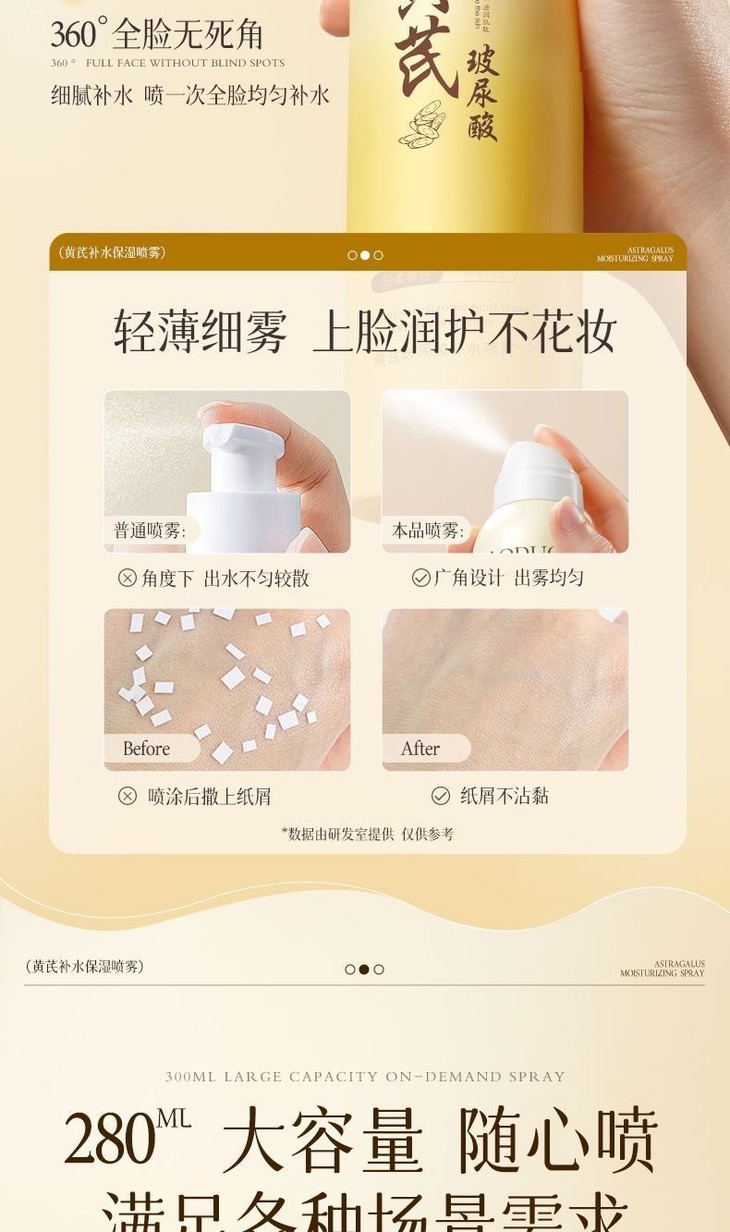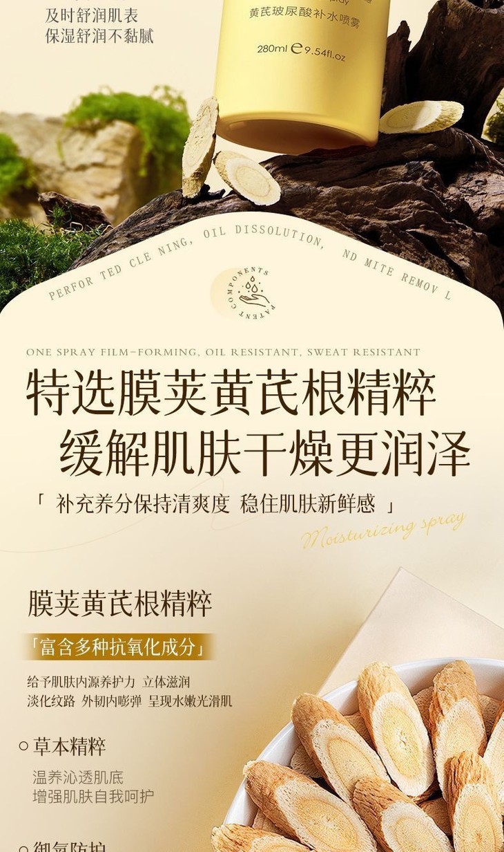 【买1送1 黄芪玻尿酸补水喷雾】保湿滋润提亮肤色收缩毛孔清爽不油腻爽肤水280ml