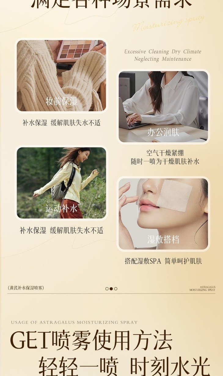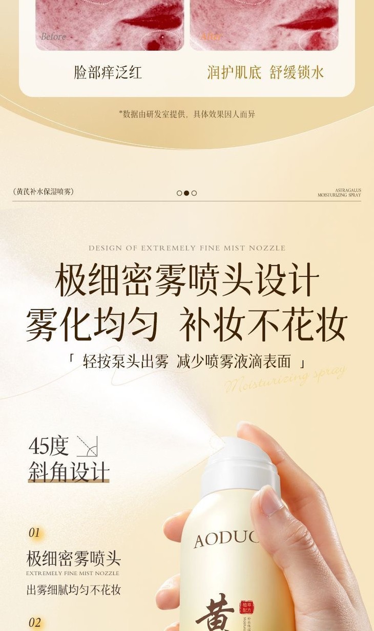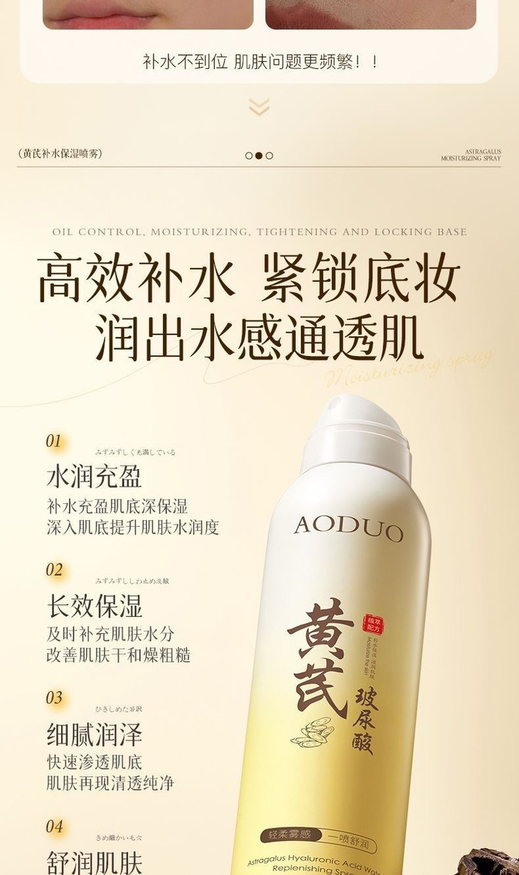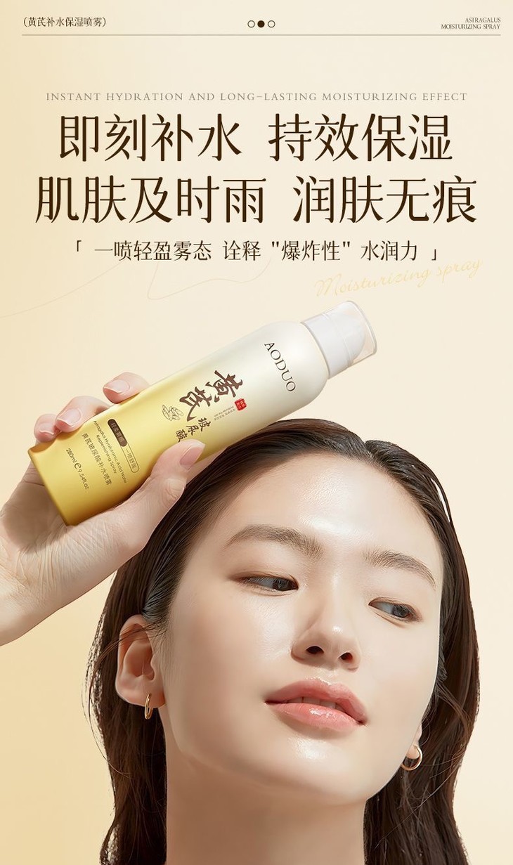 【买1送1 黄芪玻尿酸补水喷雾】保湿滋润提亮肤色收缩毛孔清爽不油腻爽肤水280ml