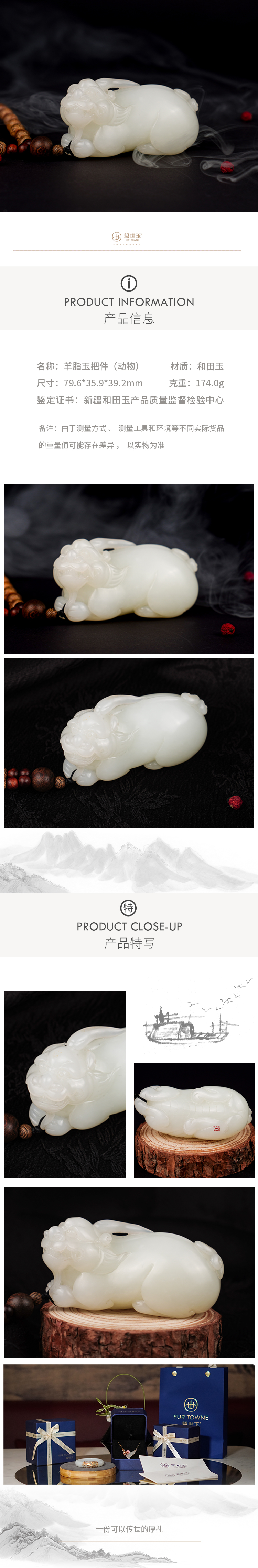 新疆国玉盟世玉【天禄傲首】羊脂玉把件【带证书·顺丰物流】
