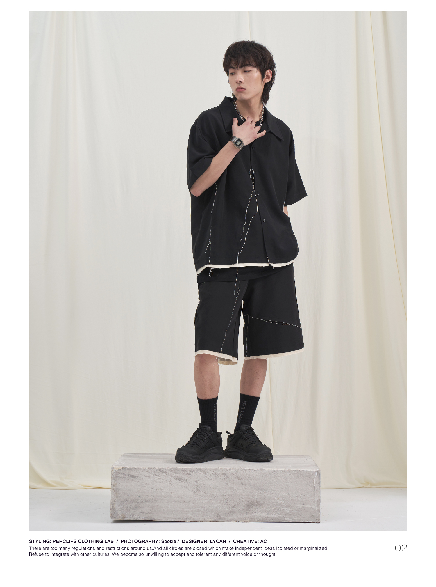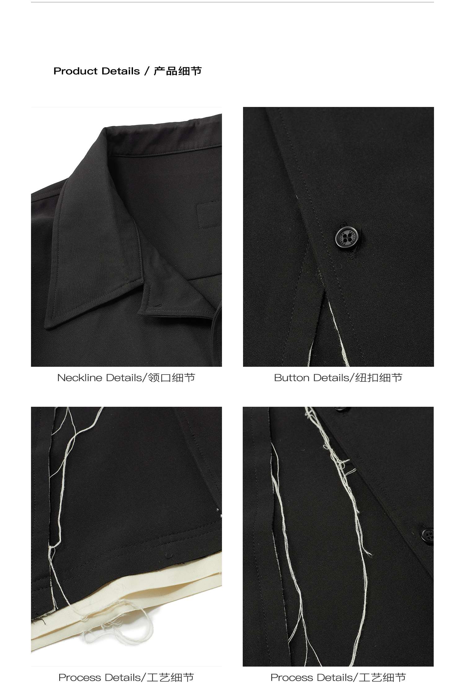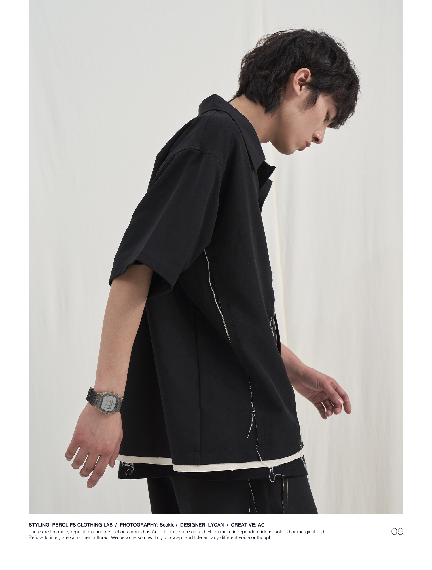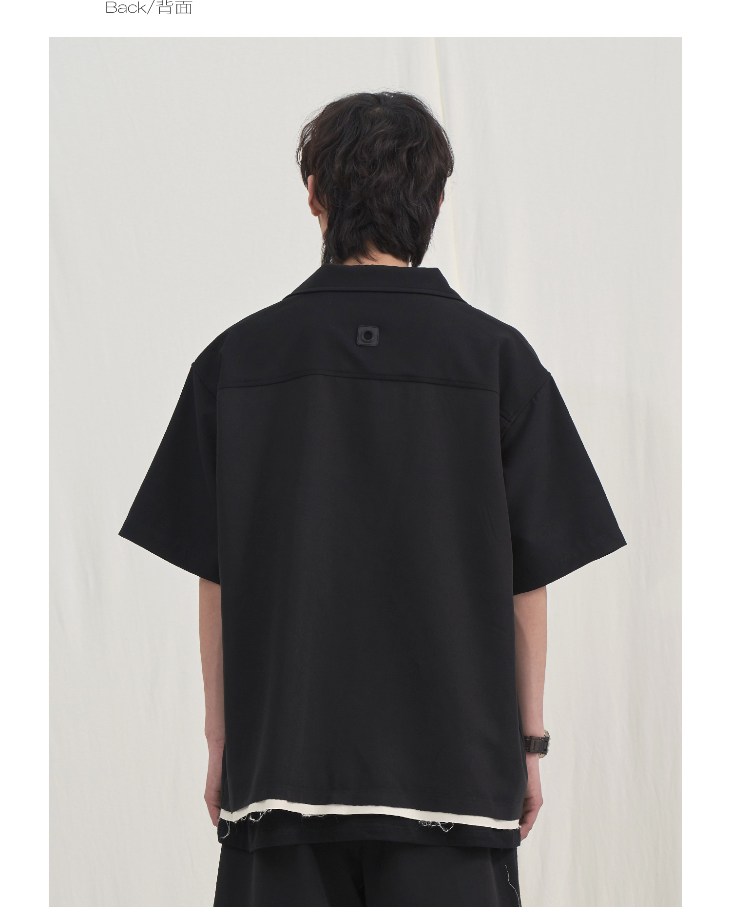 PCLP(PERCLIPS) 毛边破坏短袖衬衫国潮牌黑色休闲夏季半袖衬衣男