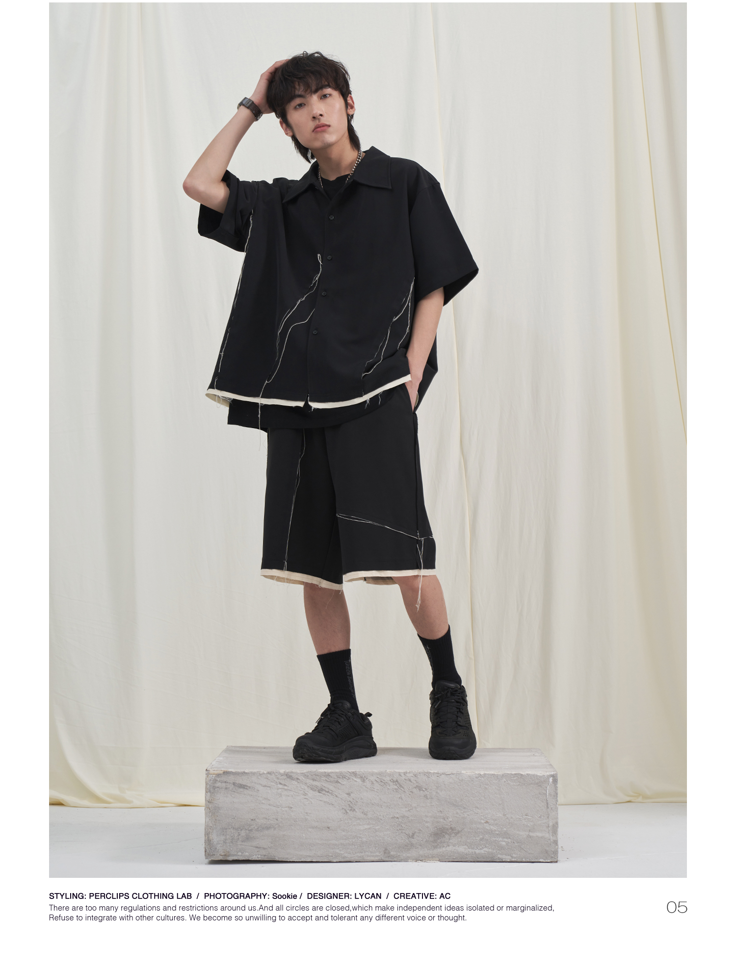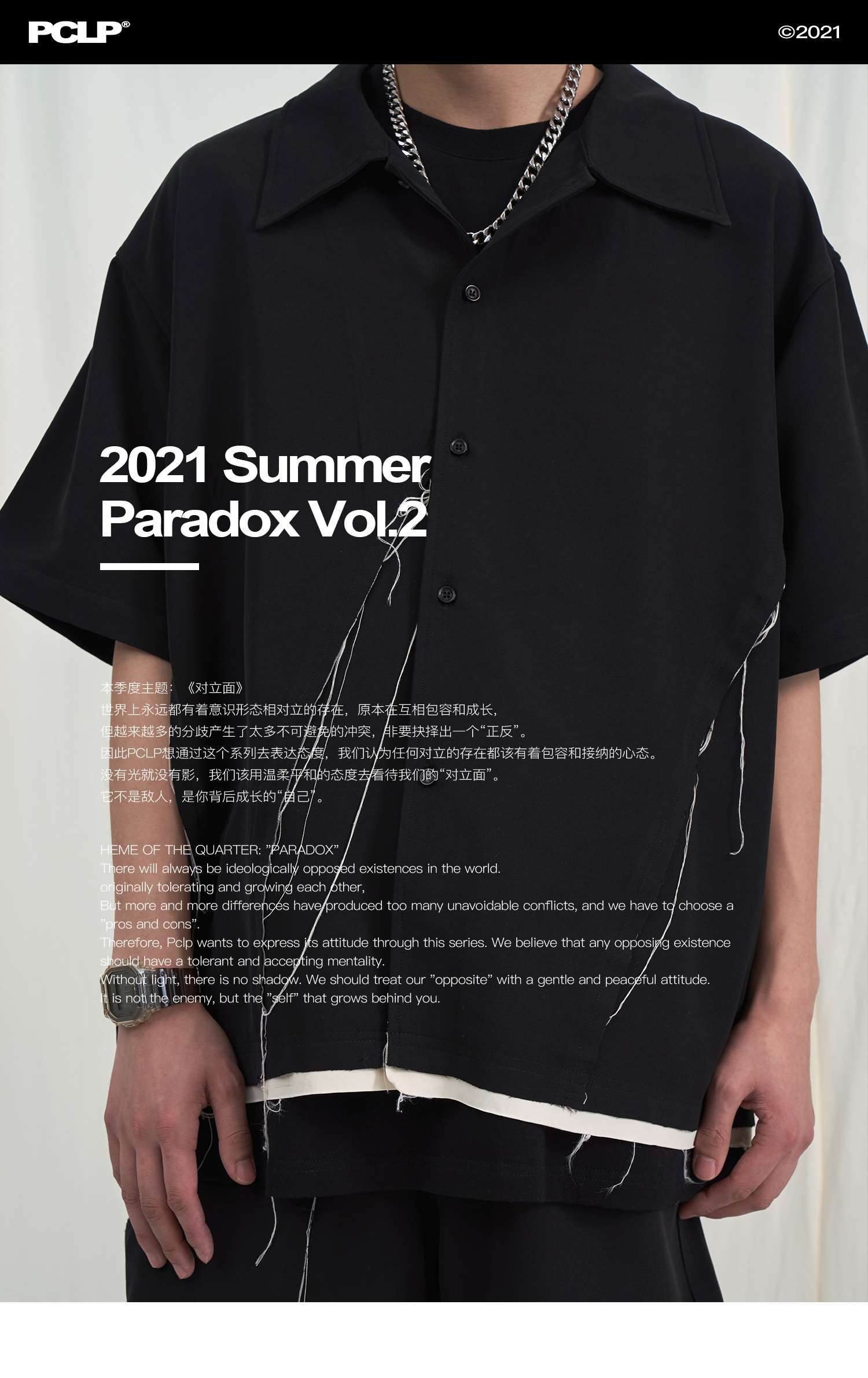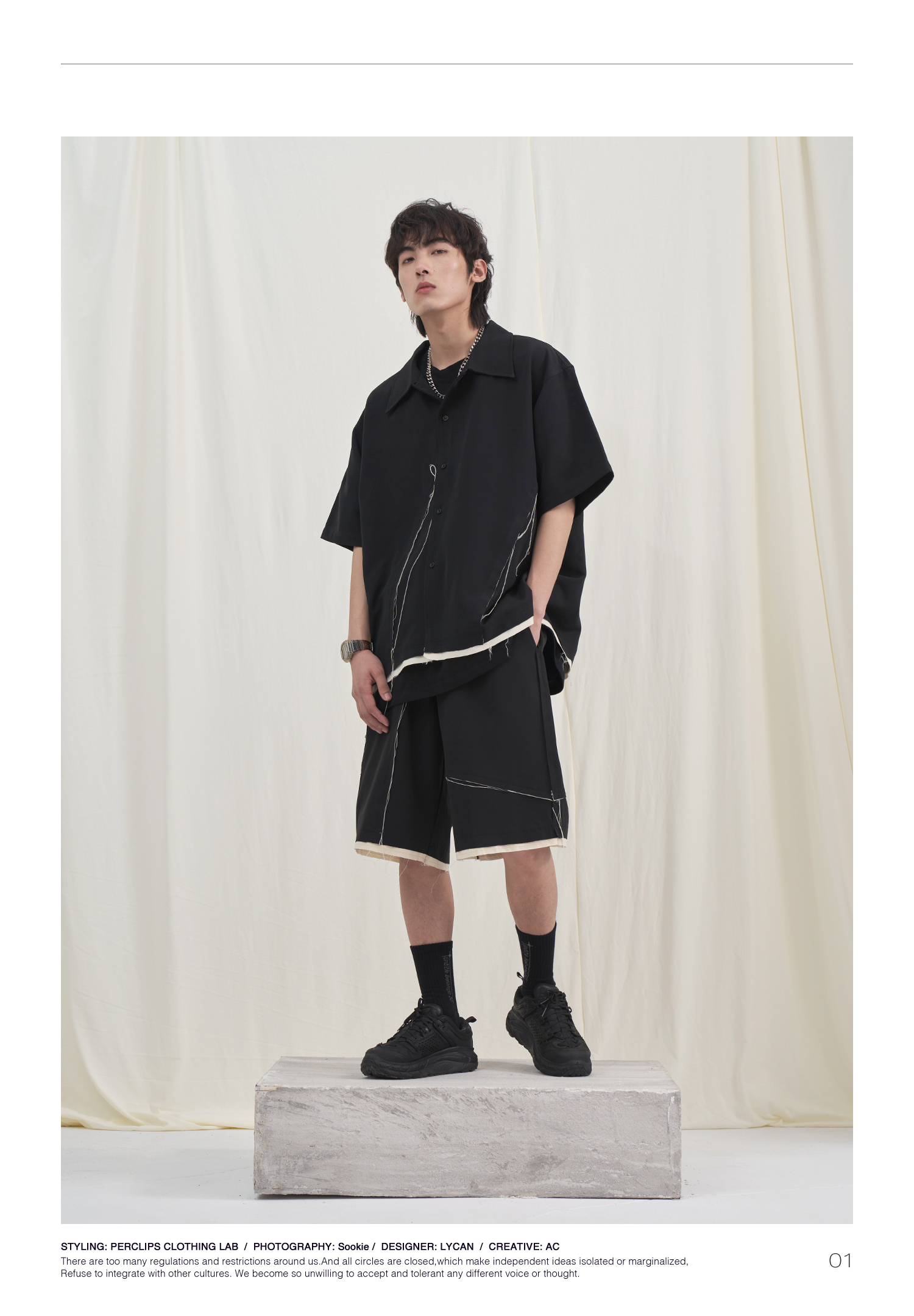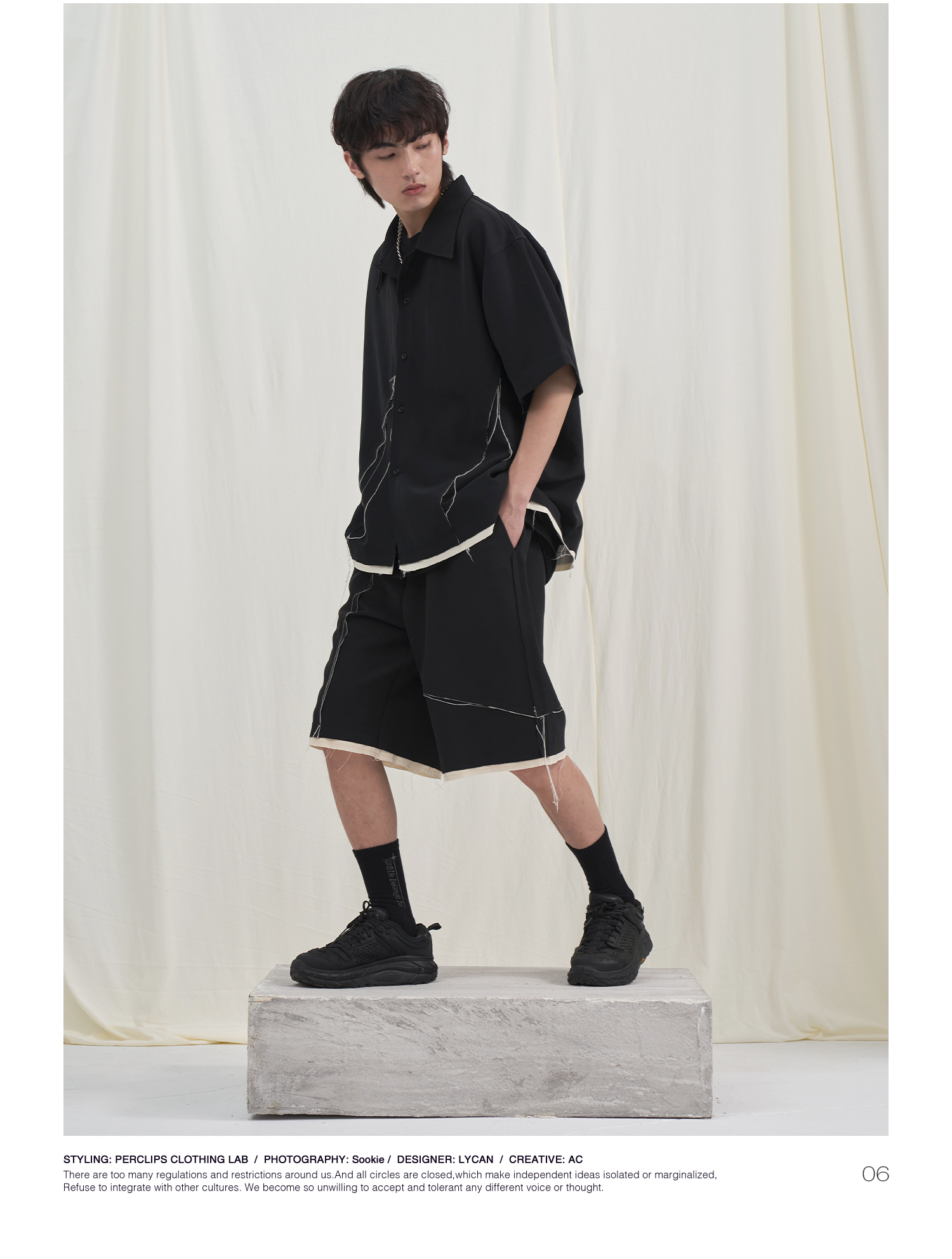 PCLP(PERCLIPS) 毛边破坏短袖衬衫国潮牌黑色休闲夏季半袖衬衣男