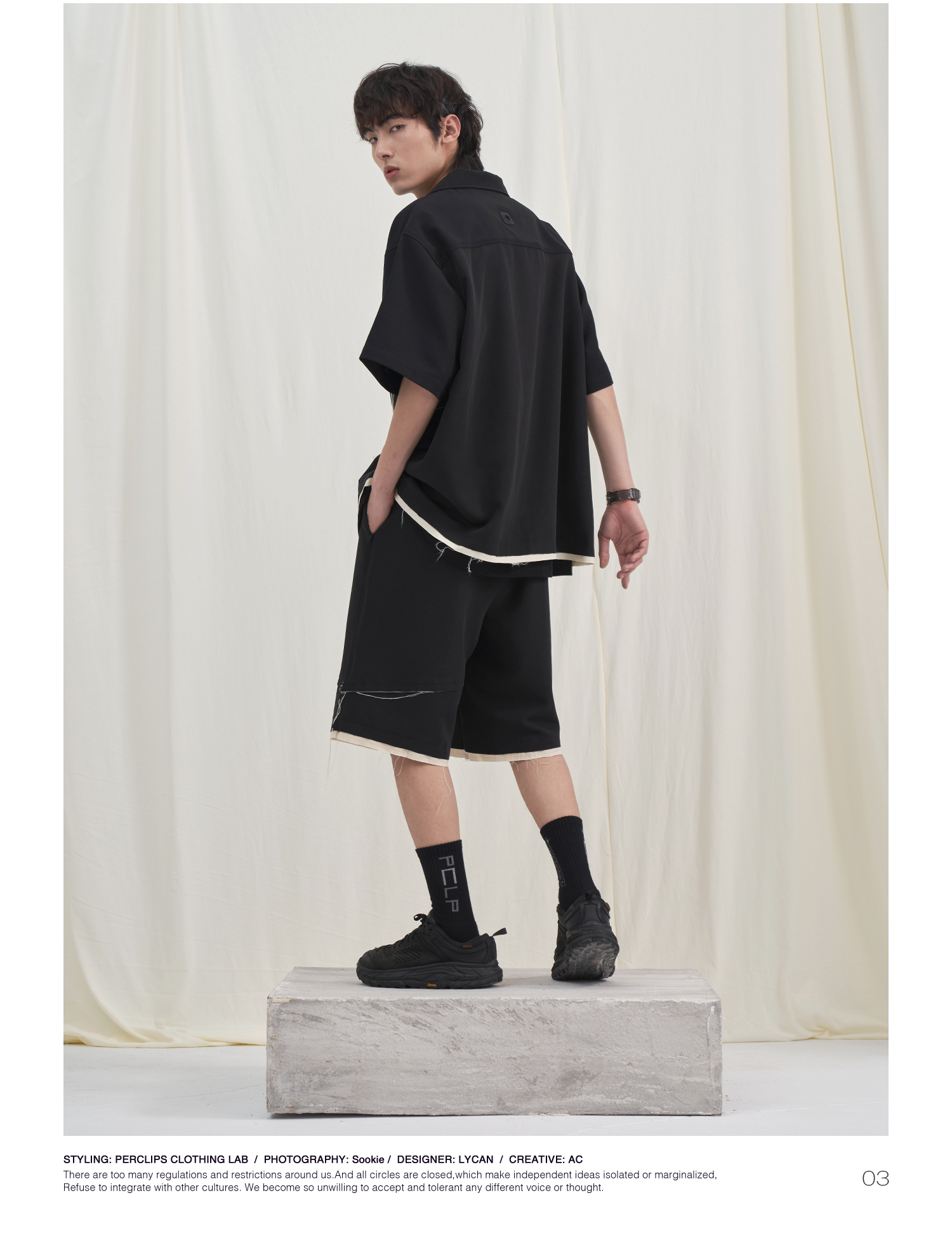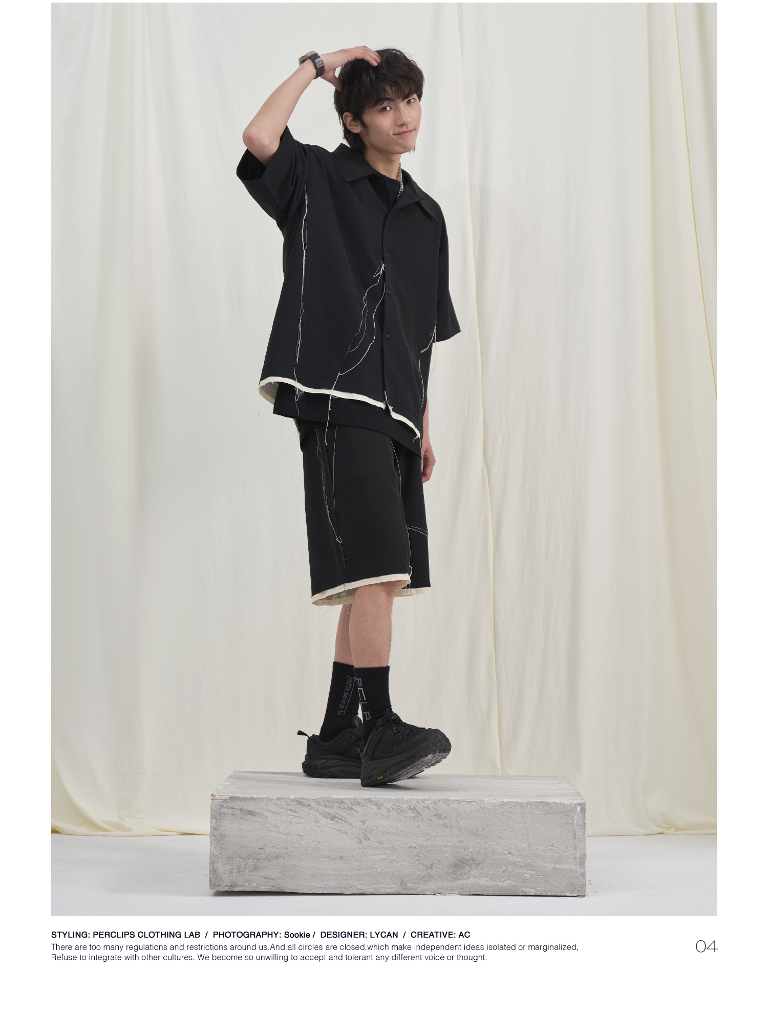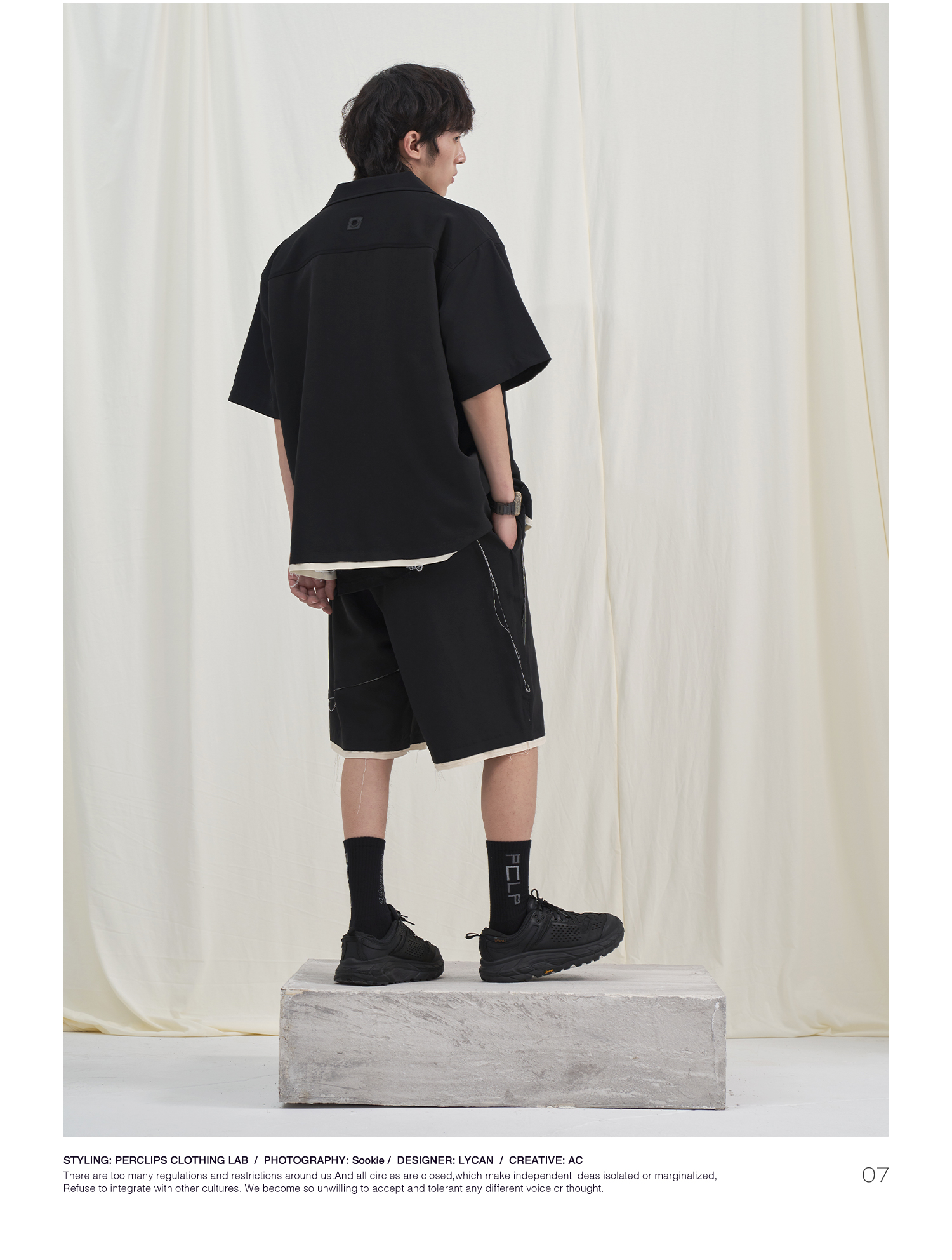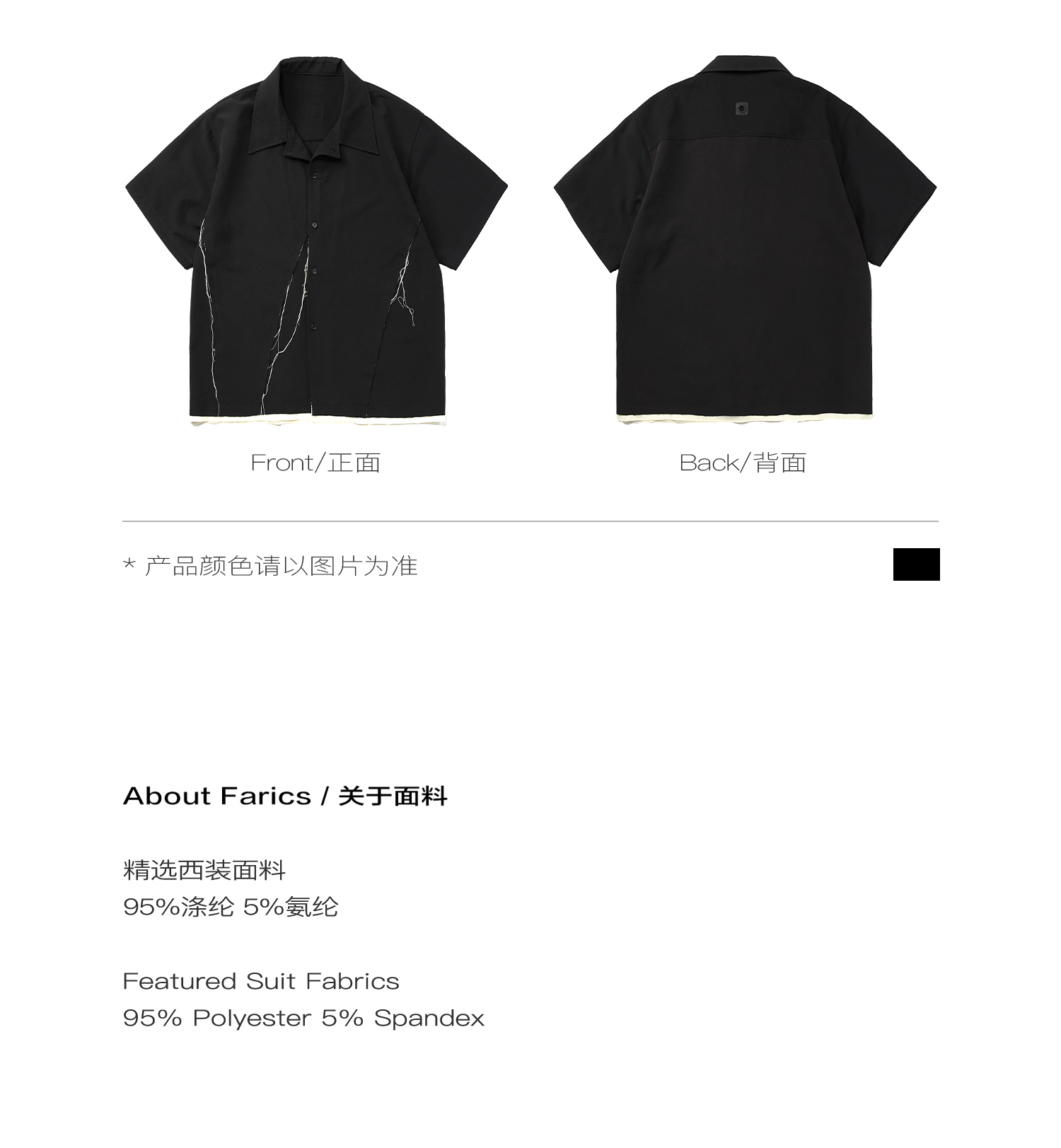 PCLP(PERCLIPS) 毛边破坏短袖衬衫国潮牌黑色休闲夏季半袖衬衣男