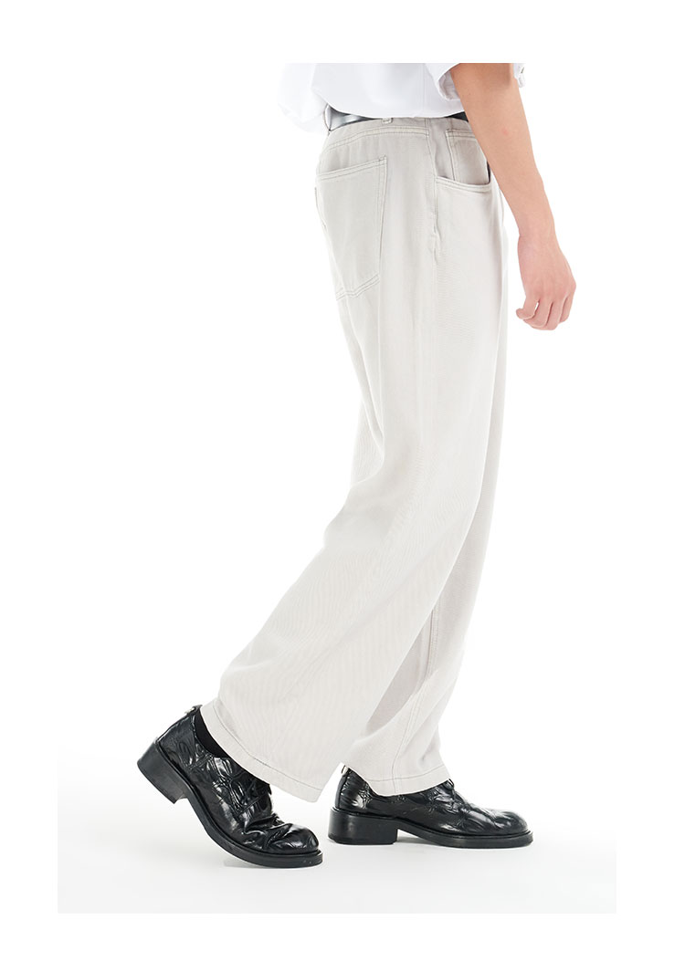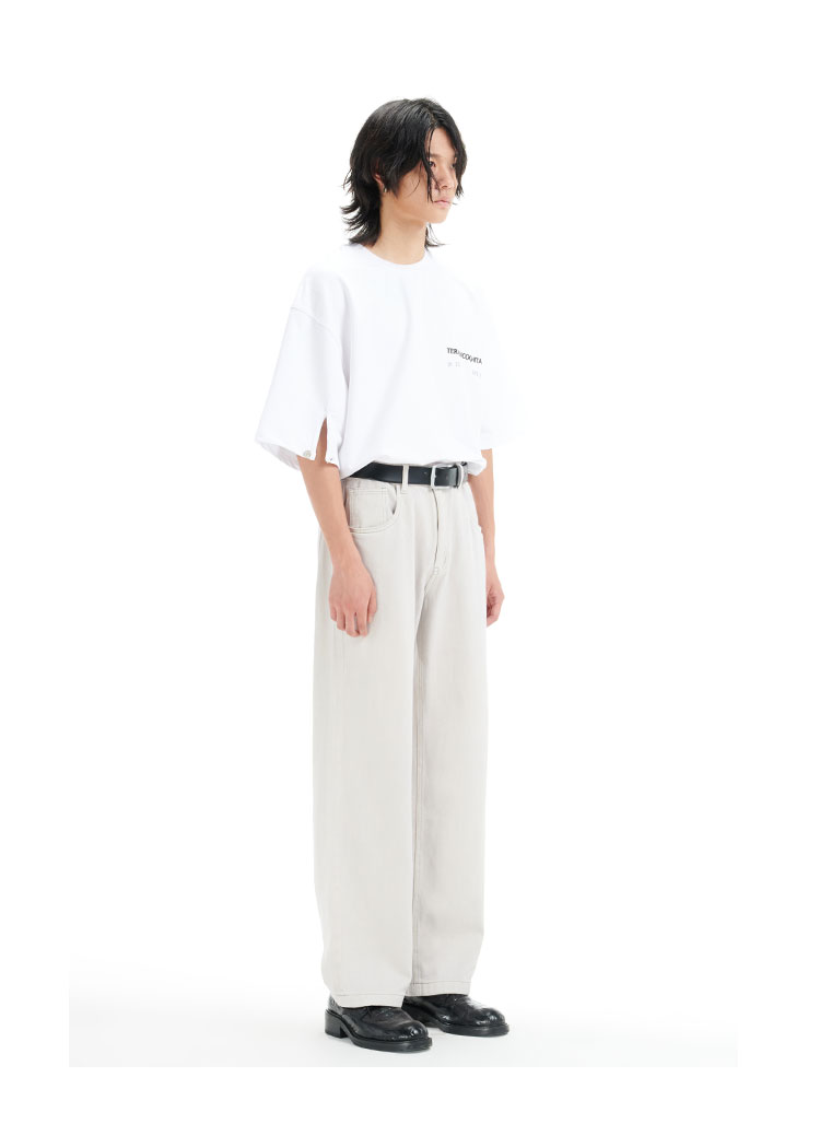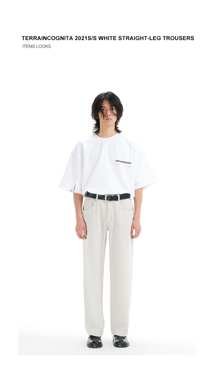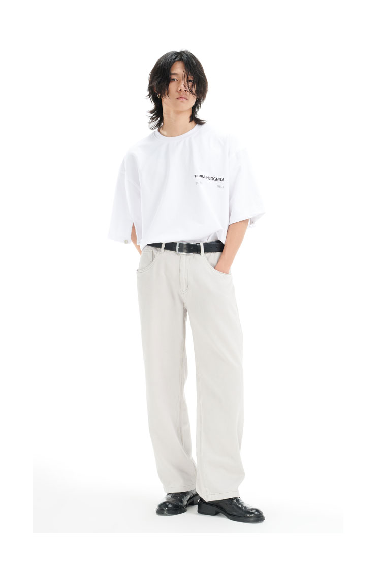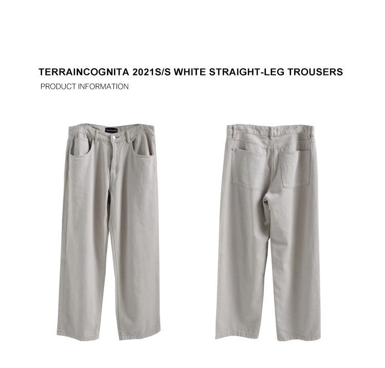 TERRAINCOGNITA21ss奶白灰宽松直筒牛仔裤基础通勤百搭休闲长裤
