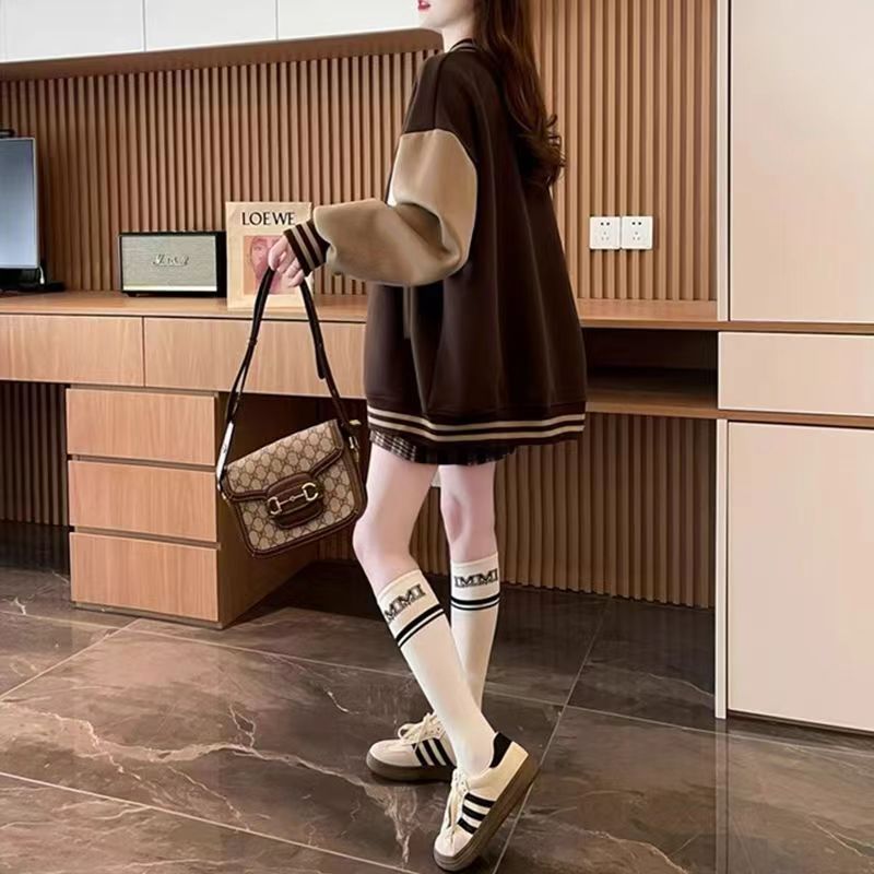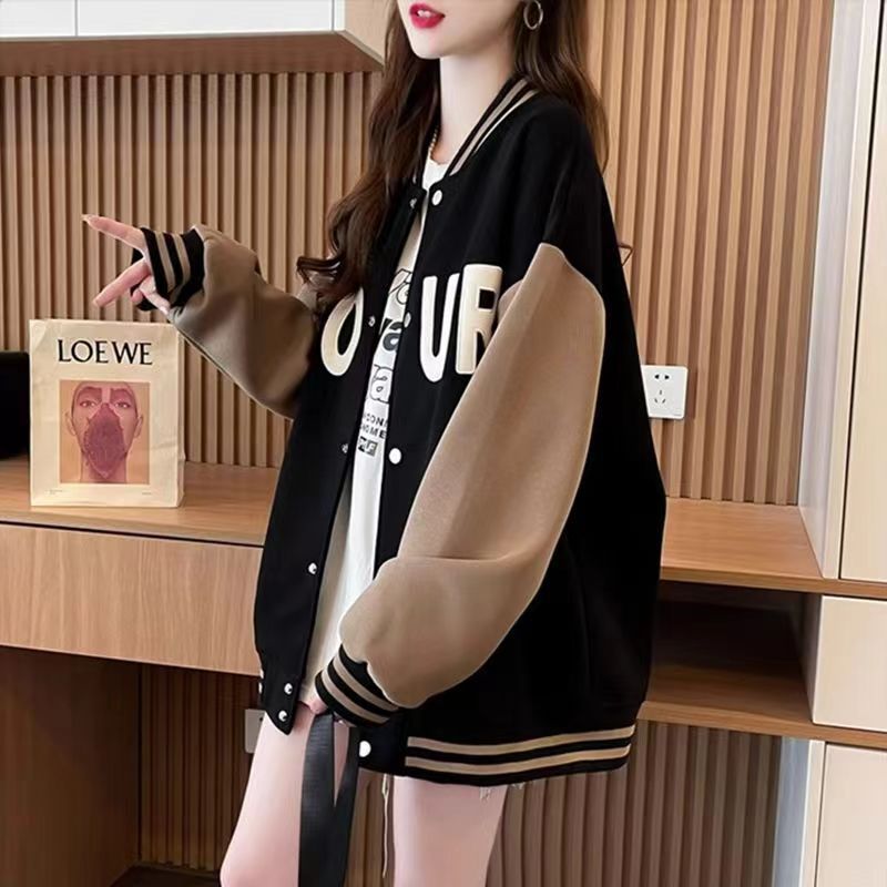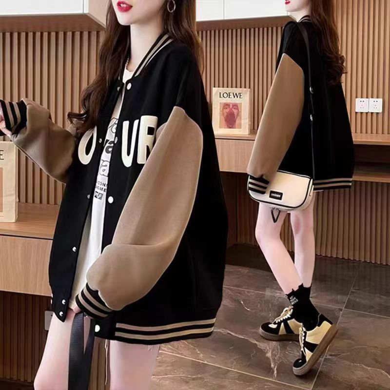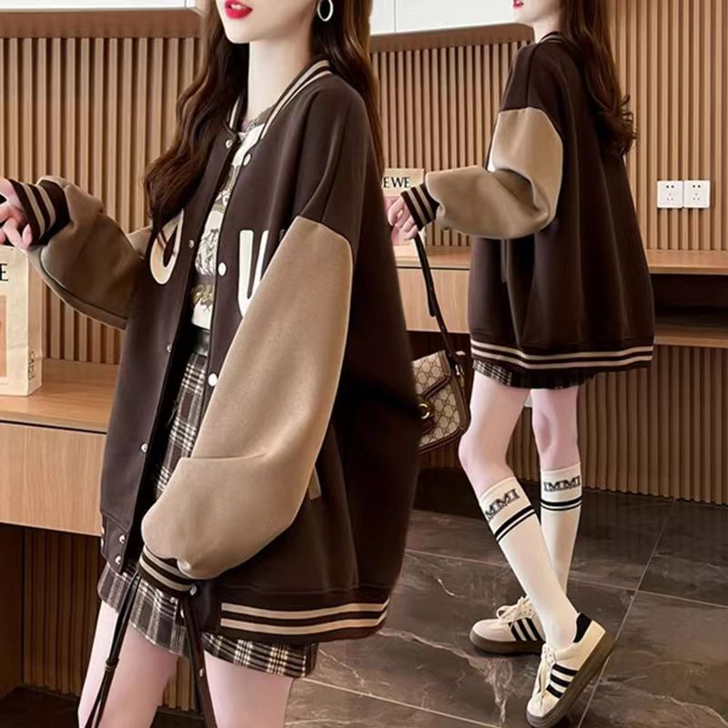 大码胖mm女装春秋薄款卫衣女美式复古设计感学院风棒球服上衣外套新款爆款