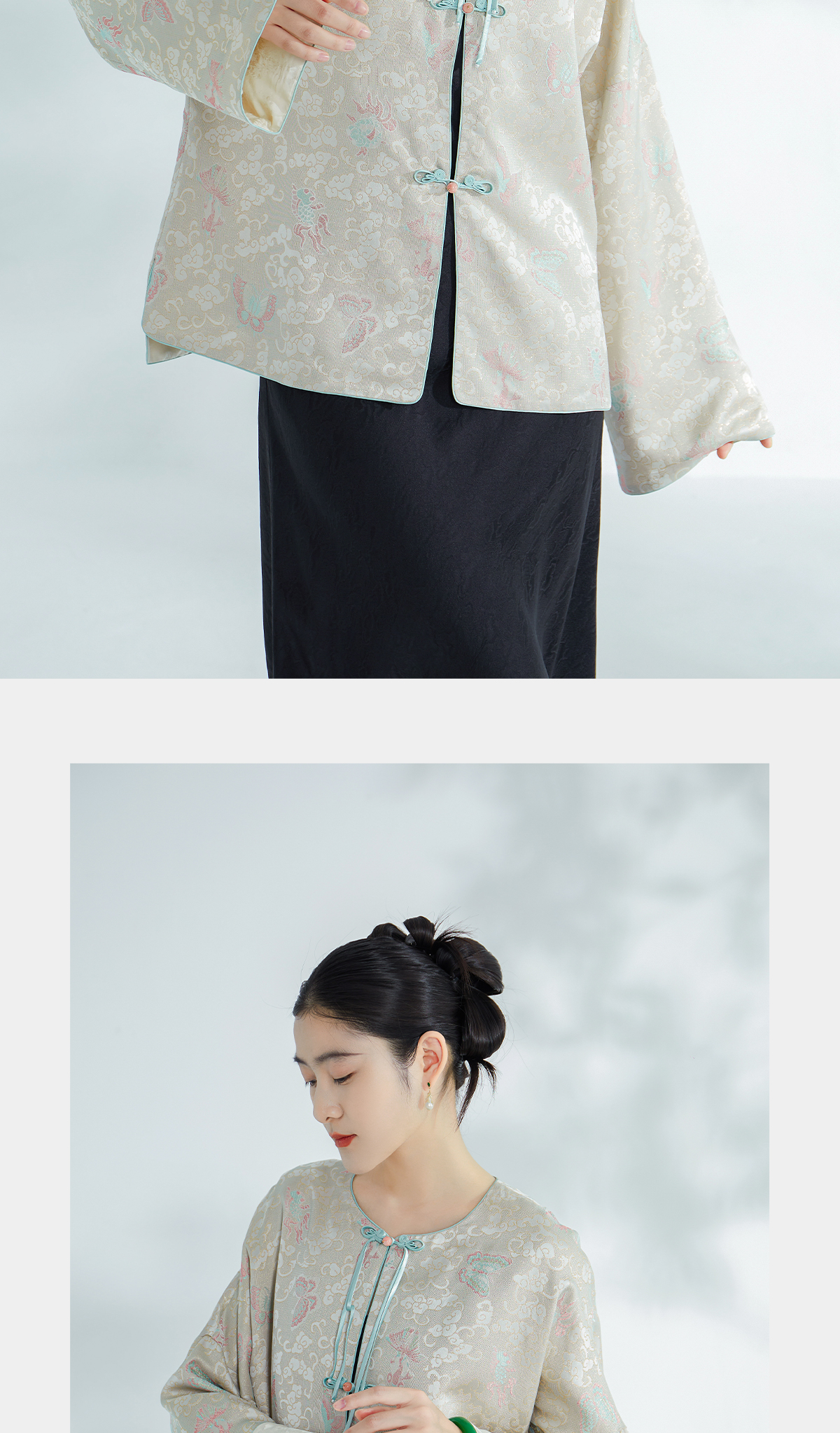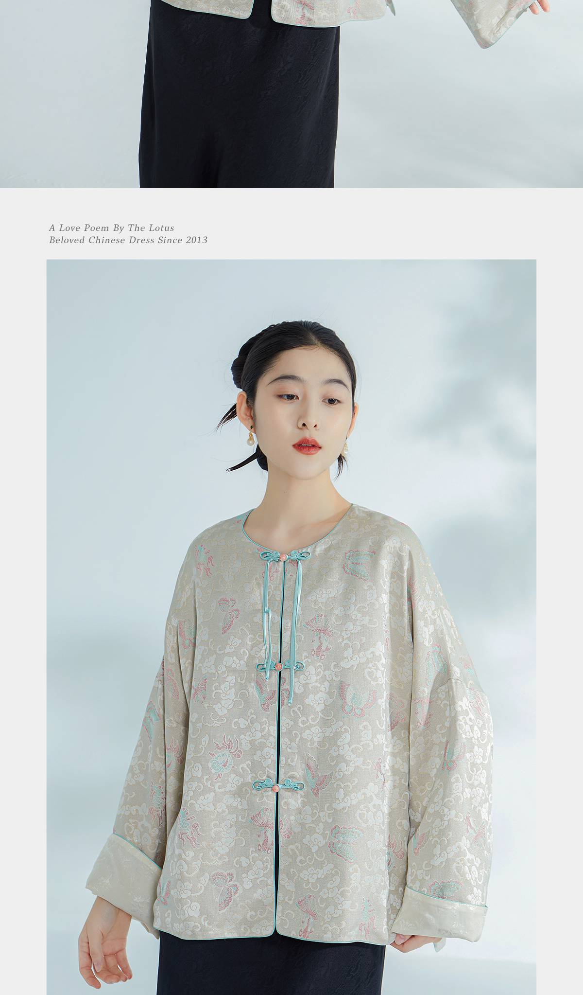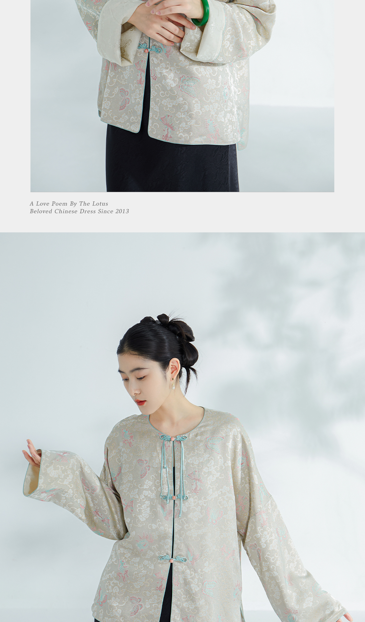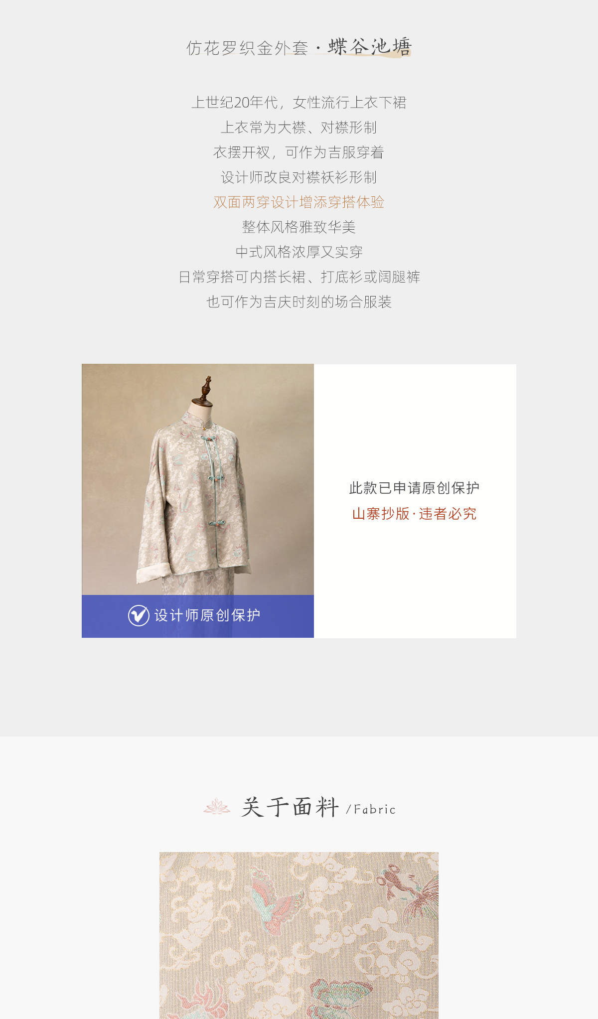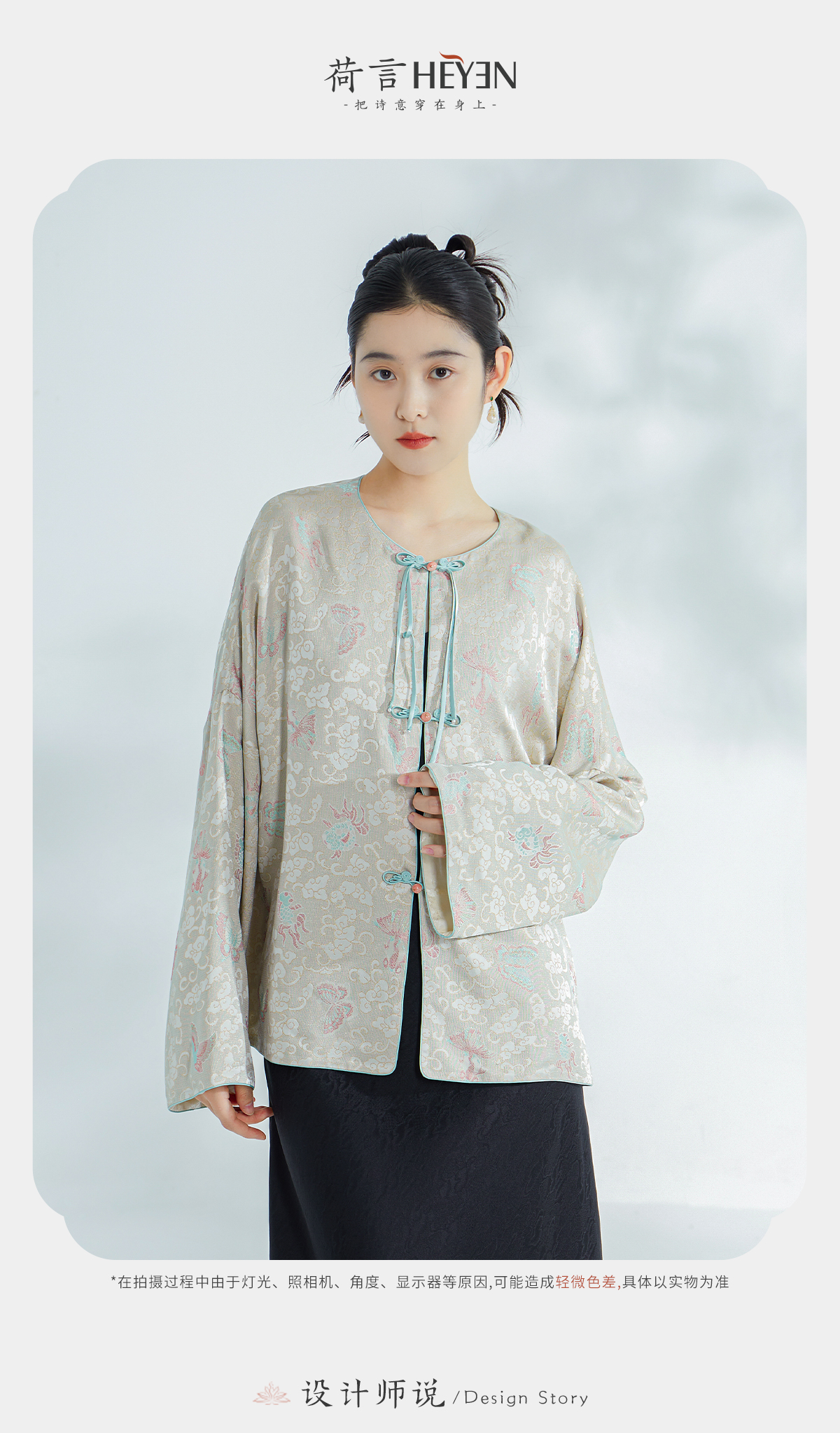 荷言GL 蝶谷池塘 仿罗人丝织金提花初秋对襟可两穿外套新中式