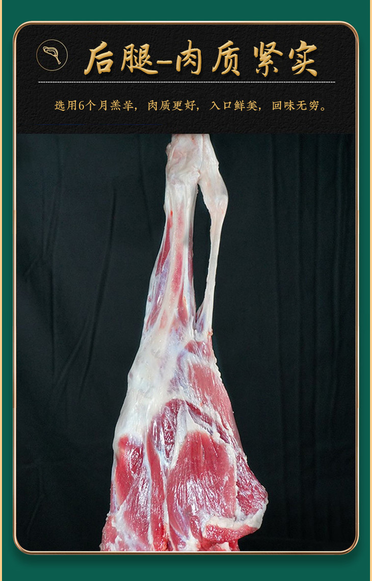 羊后腿:带骨整腿、瘦肉多、肥油少、可炖、可炒。