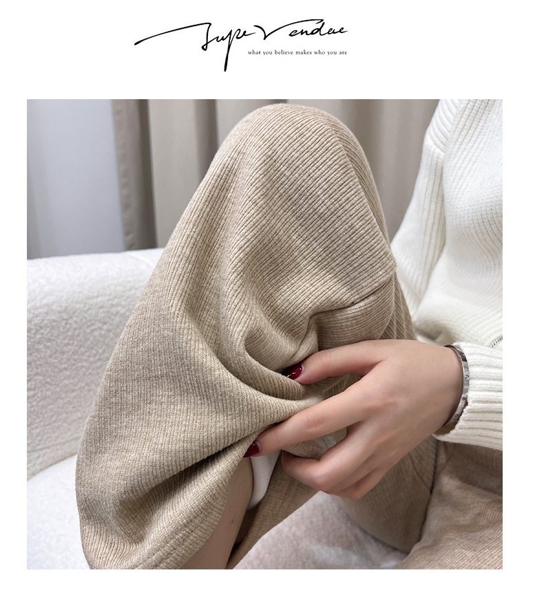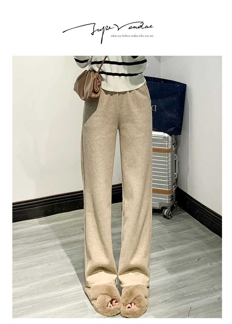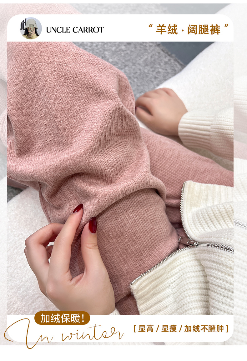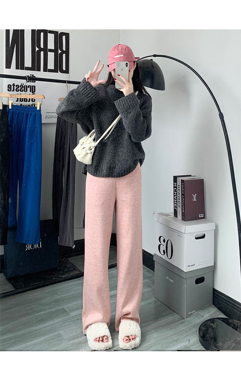 「五款颜色」春秋新款窄版针织羊绒裤阔腿裤 女秋冬新款高腰直筒保暖休闲裤下装