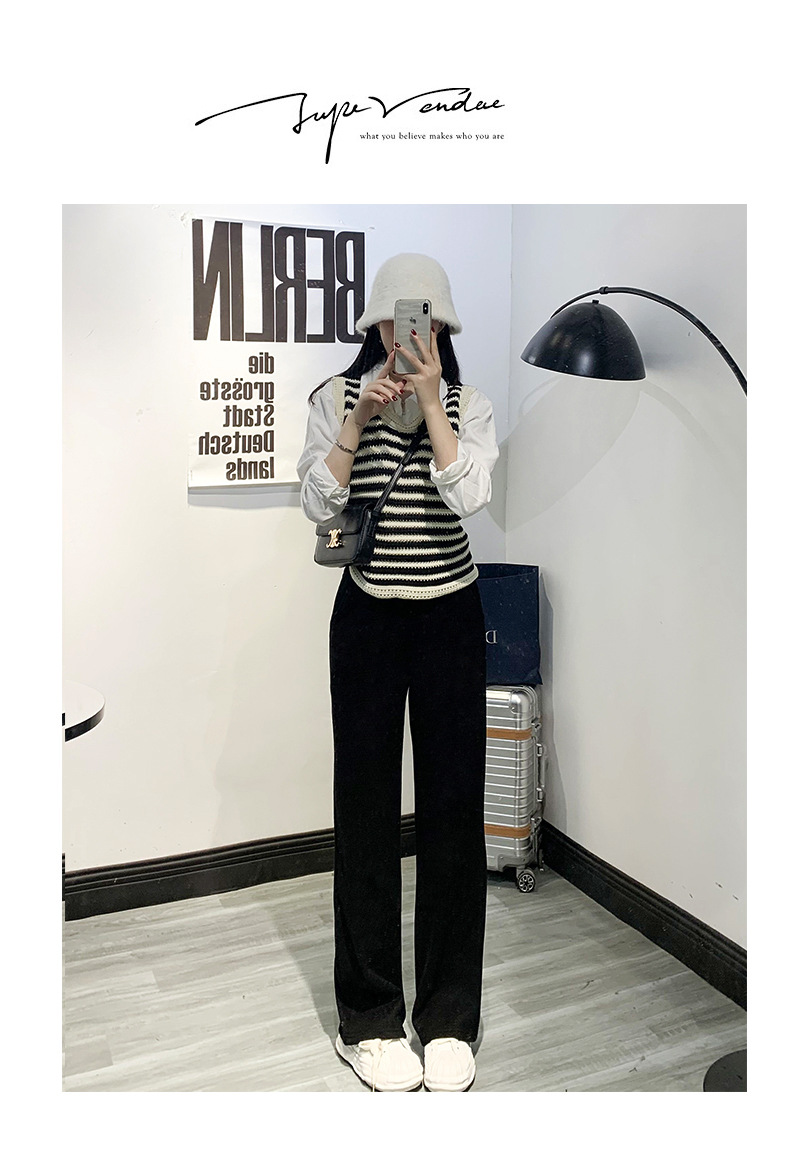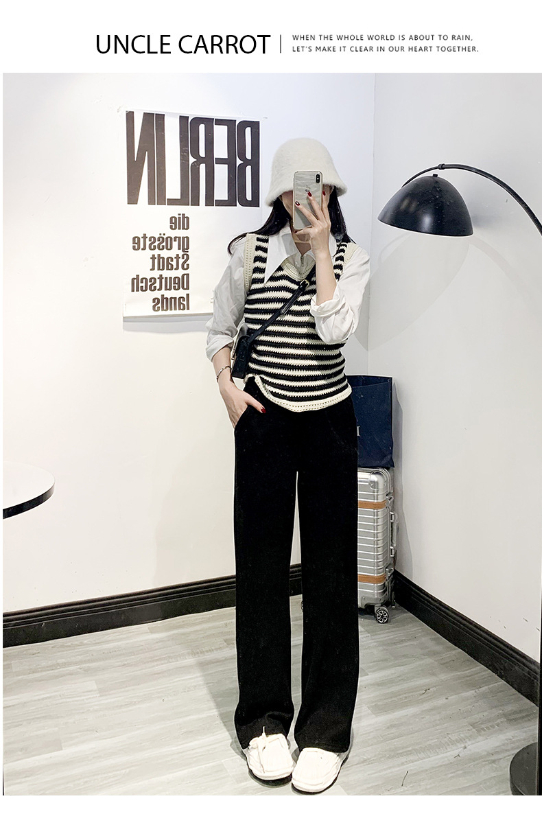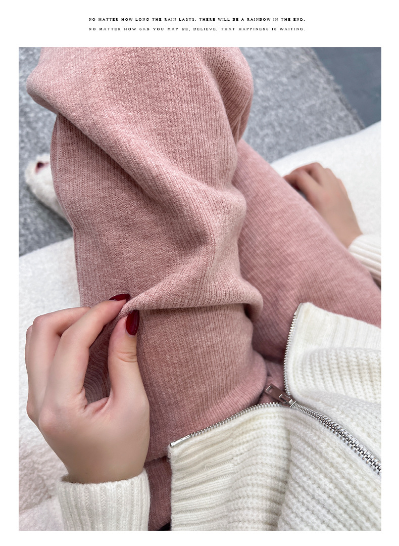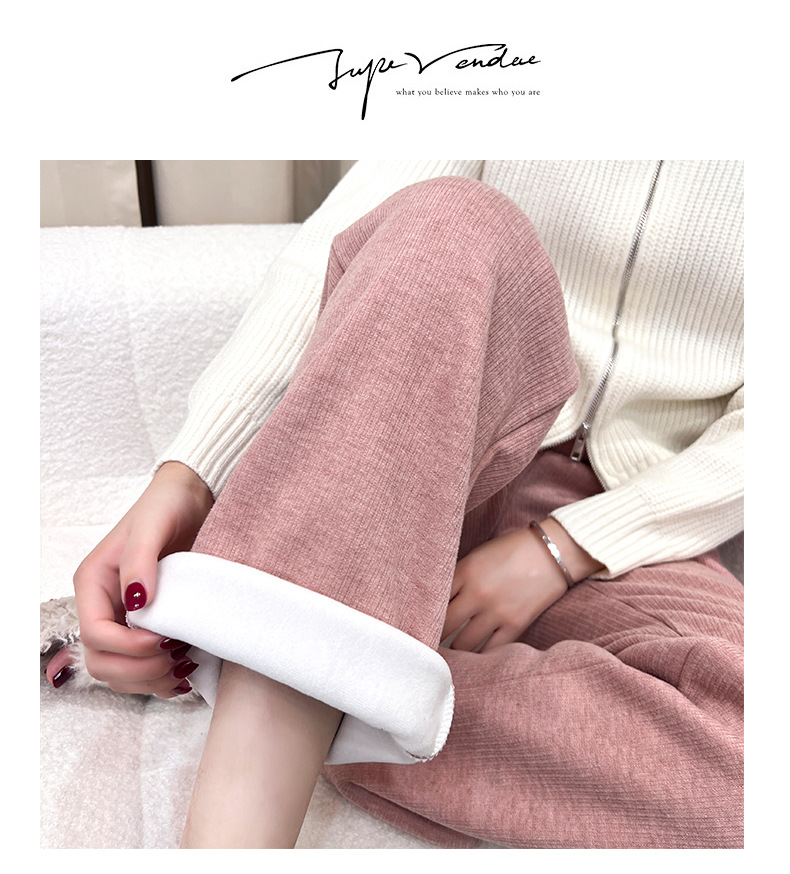 「五款颜色」春秋新款窄版针织羊绒裤阔腿裤 女秋冬新款高腰直筒保暖休闲裤下装