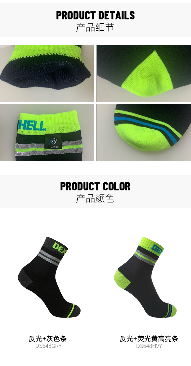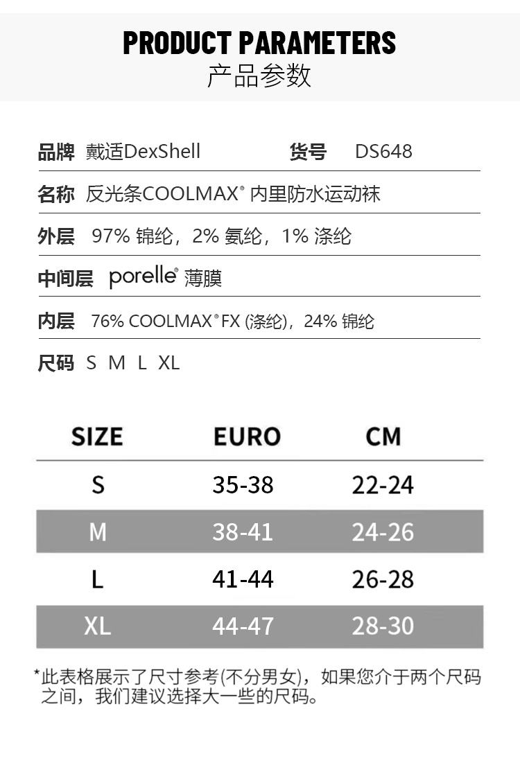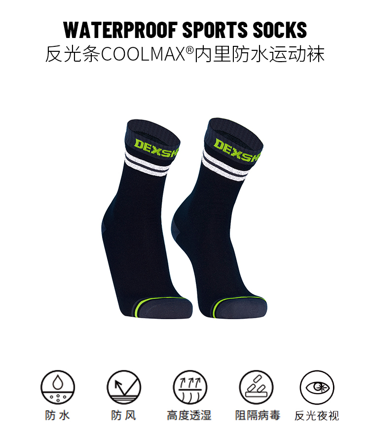 DexShell 戴适 反光条COOLMAX内里防水运动袜 DS648