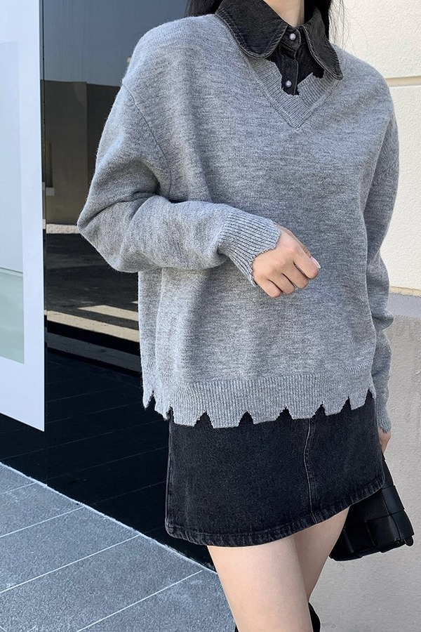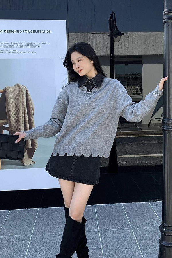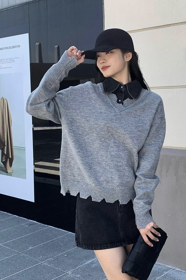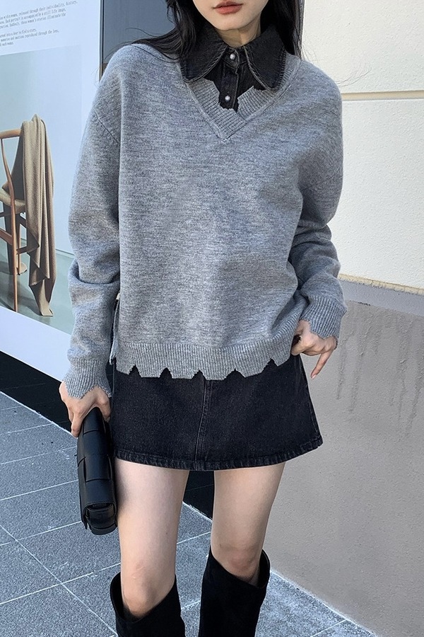 Kai & Kiera 不规则拼接衬衫做旧上衣 17816
