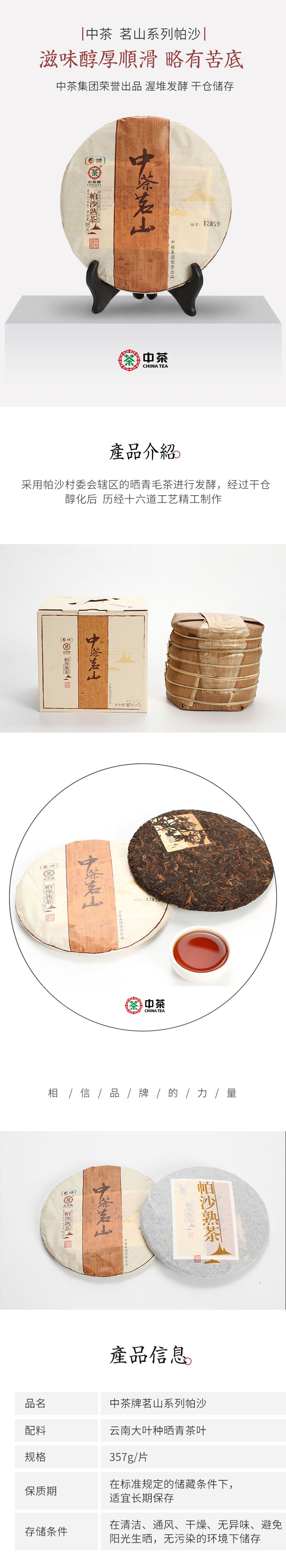 中粮-中茶2016年帕沙普洱熟茶云南七子饼357g/饼中茶茗山系列普洱茶