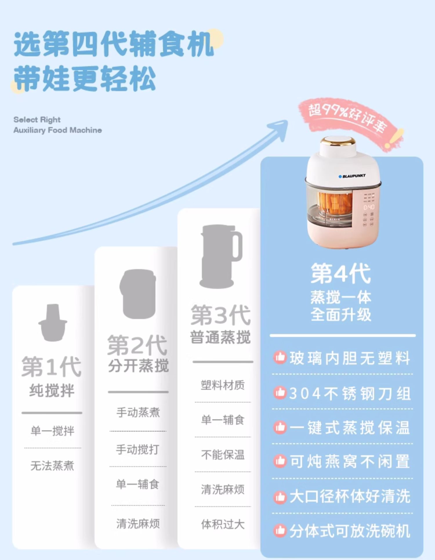 【德国蓝宝辅食机】蒸煮一体机多功能搅拌料理机儿童打泥米糊婴儿宝宝专用