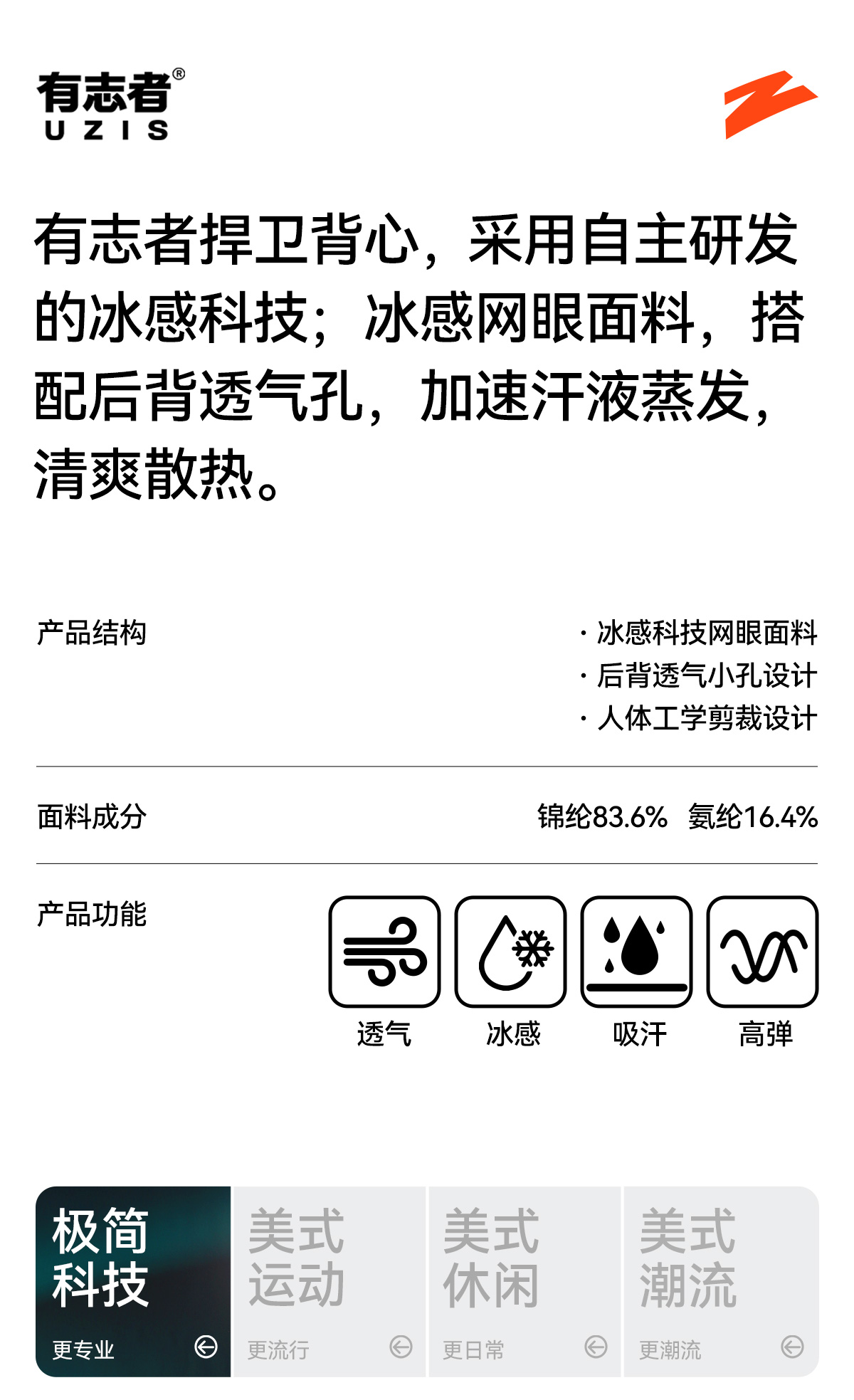 有志者UZIS极简科技运动背心男夏季健身训练冰感网眼透气坎肩捍卫