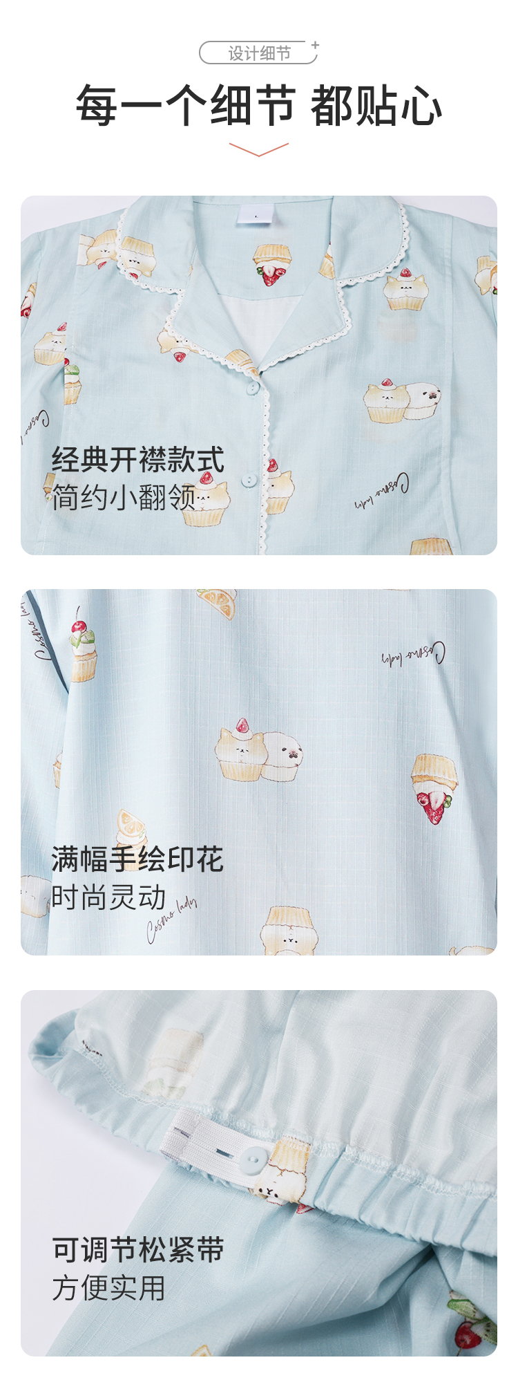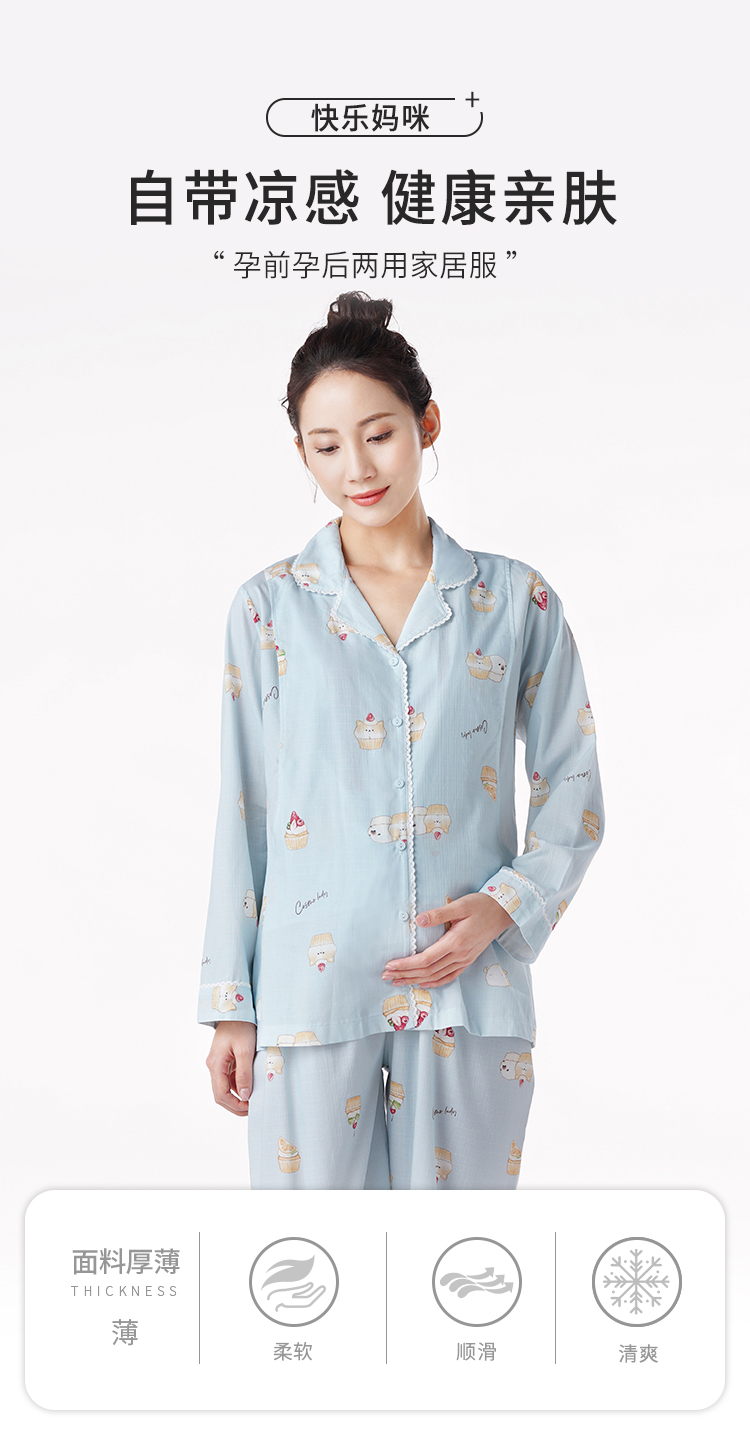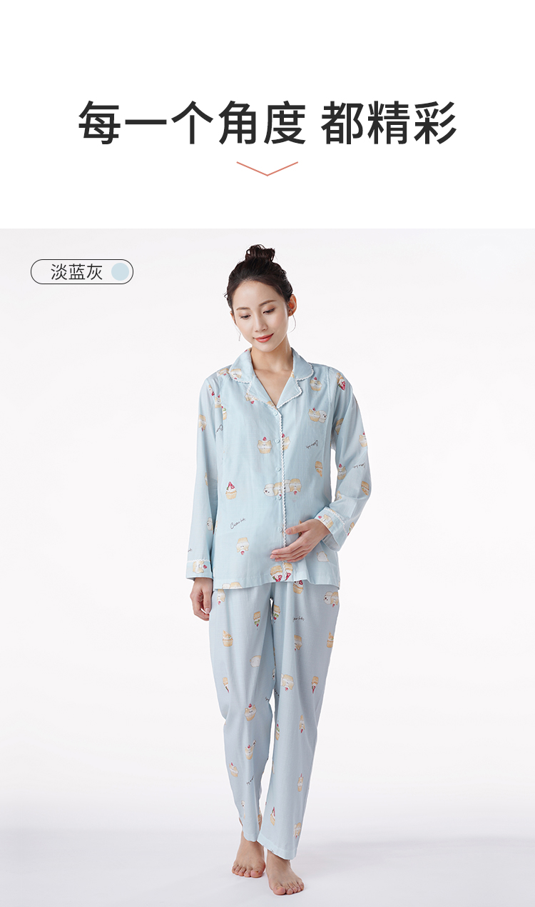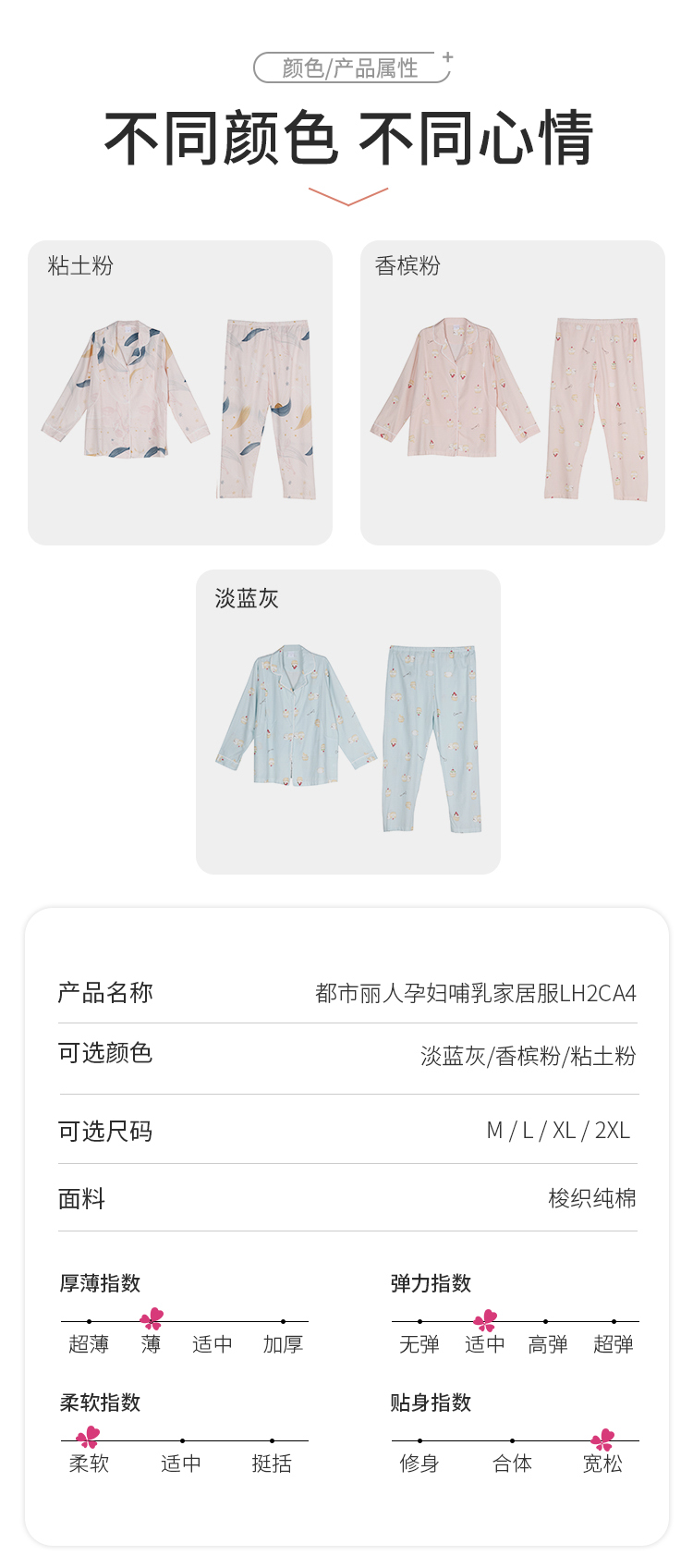 都市丽人女士棉质孕哺套装梭织棉薄长袖睡衣LH2CA4