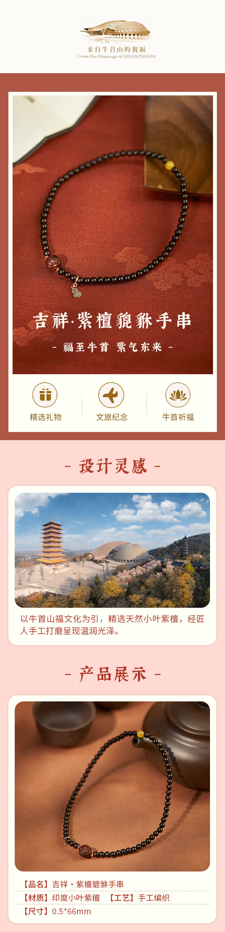 牛首山文创紫檀貔貅双圈手串女生生日礼物送爸爸实用节日礼物