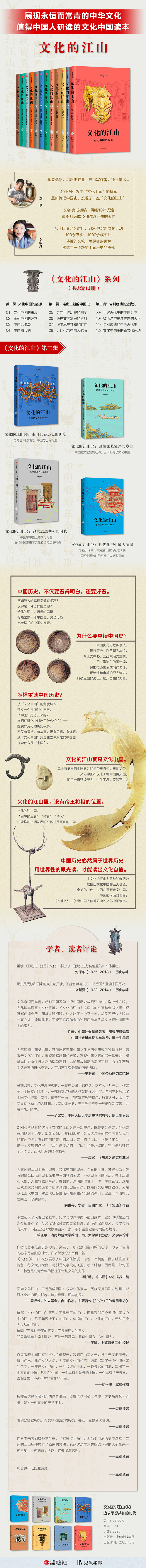 文化永恒而常青。超越王朝视角,把中国历史放到江山中,以诗性之眼,去品读其厚重的文化底蕴。《文化的江山》这套书的立意与全球文明史视野均值得点赞。而其大胆阐释,让人吃了一惊又一惊,却又不乏令人眼前一亮之处。捧读此书,不能不感叹作者的独到思维与优美文字相碰撞而产生的魔力。
