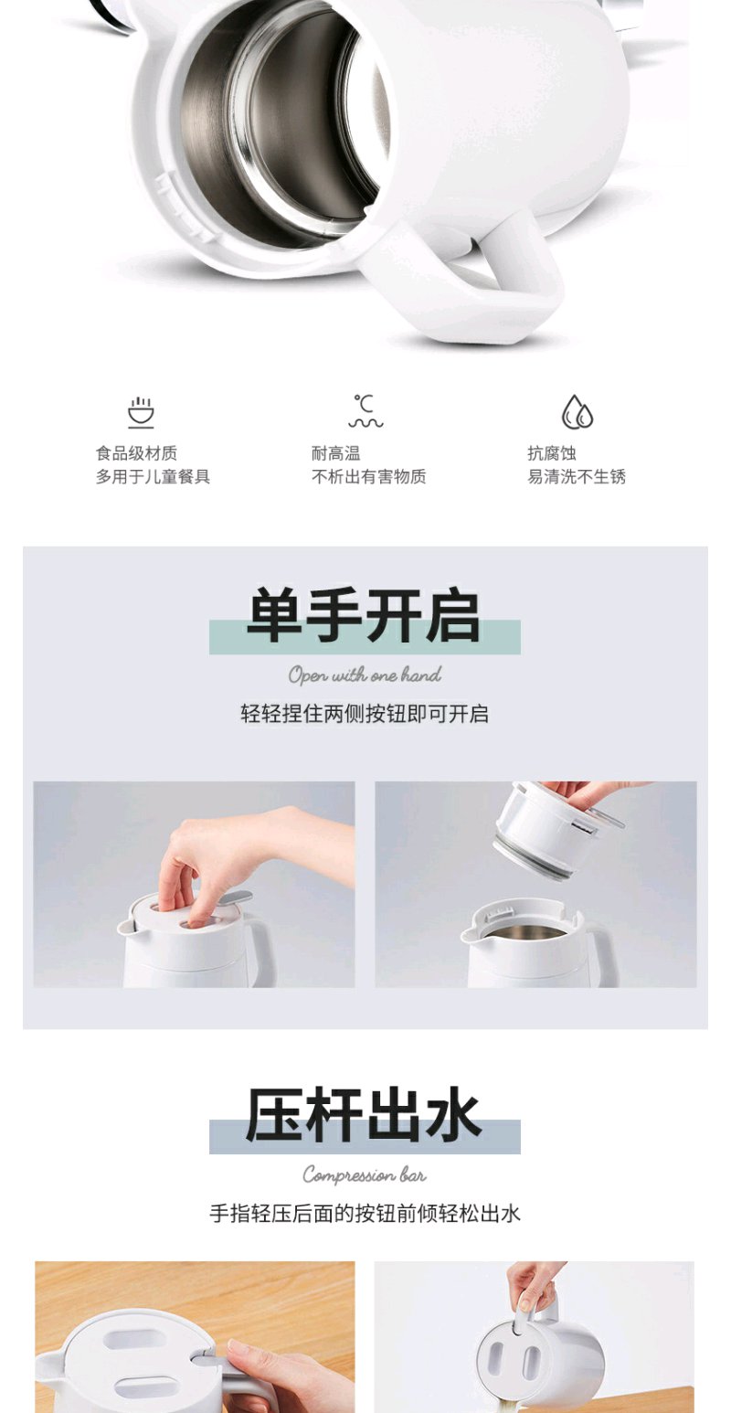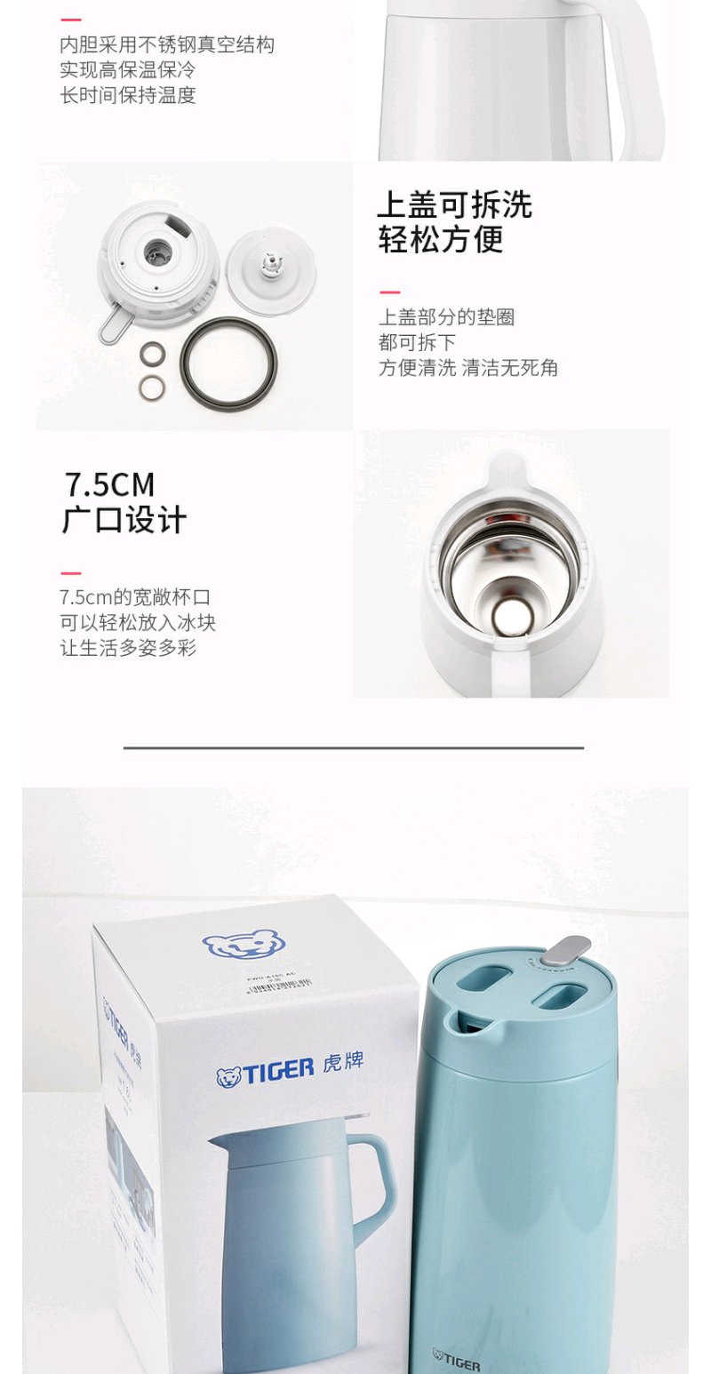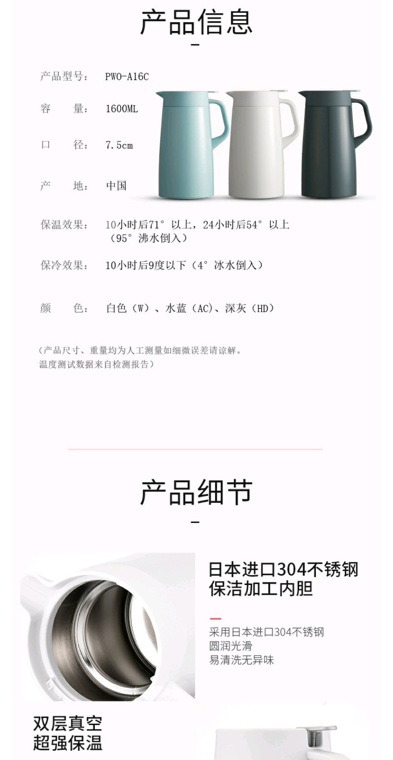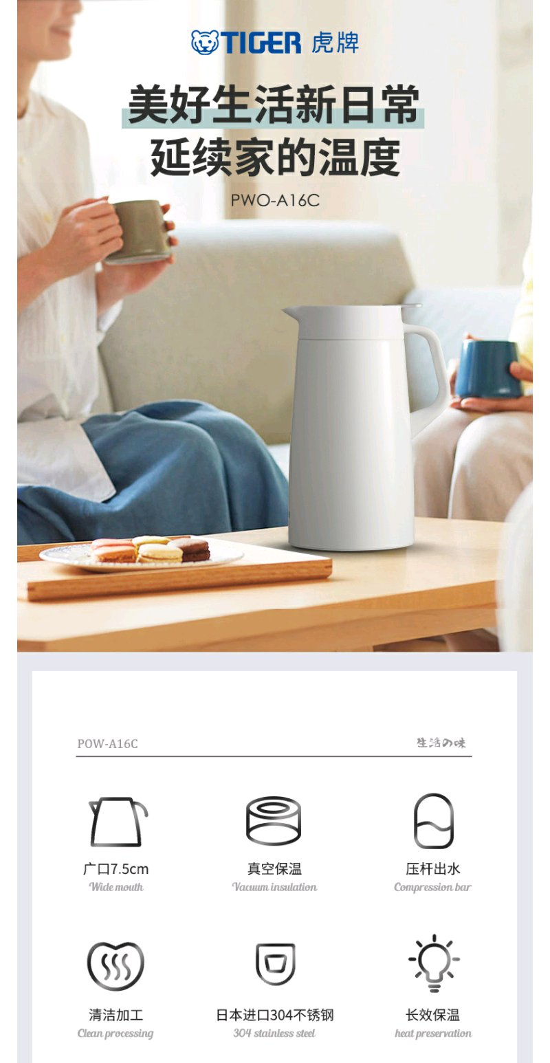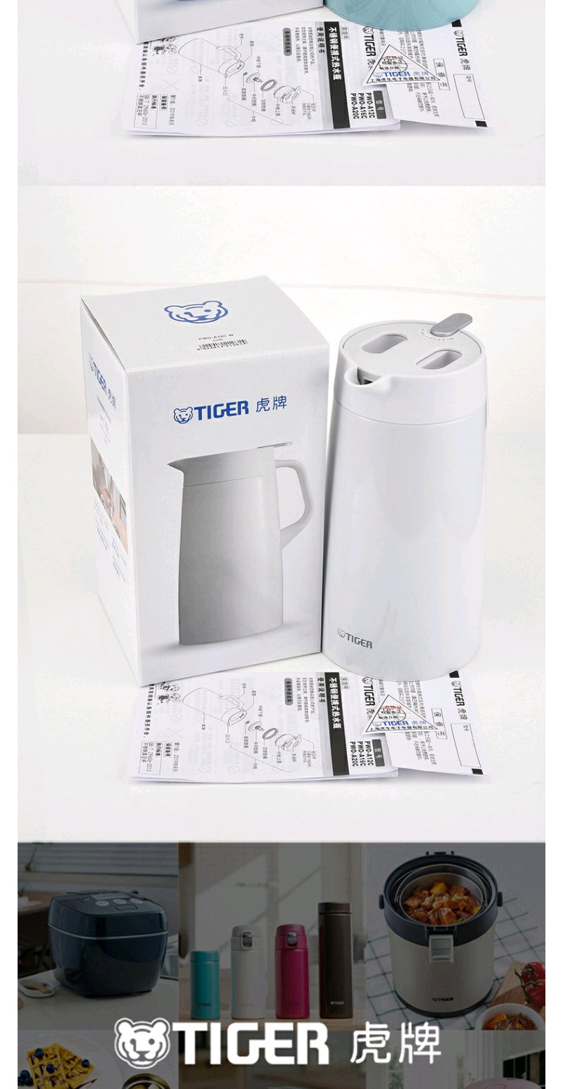 日本虎牌Tiger 不锈钢保温壶家用简约纯色便携保暖热水壶1.6L