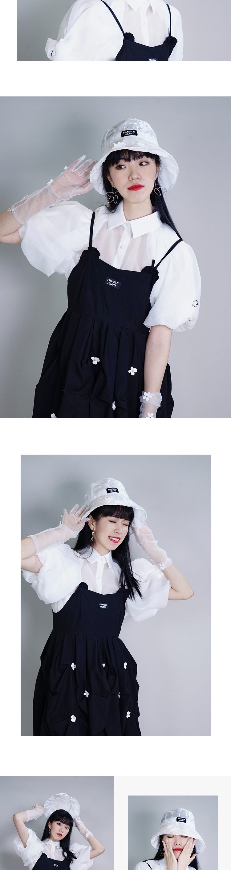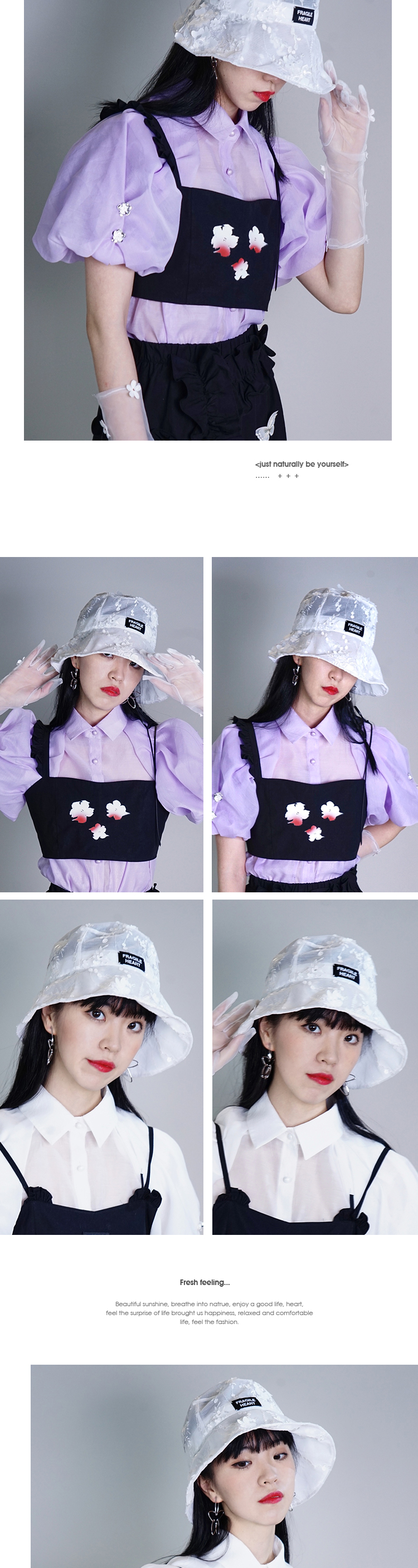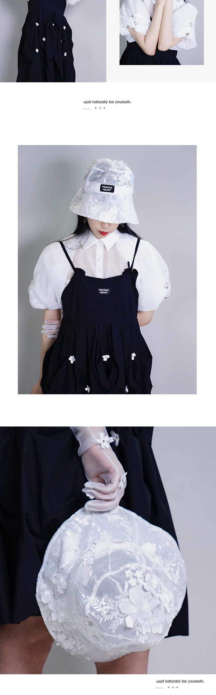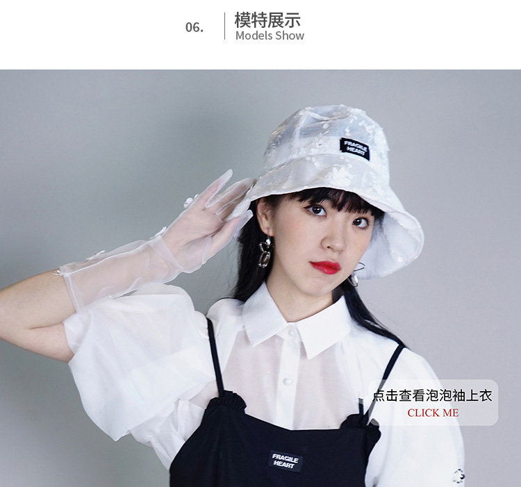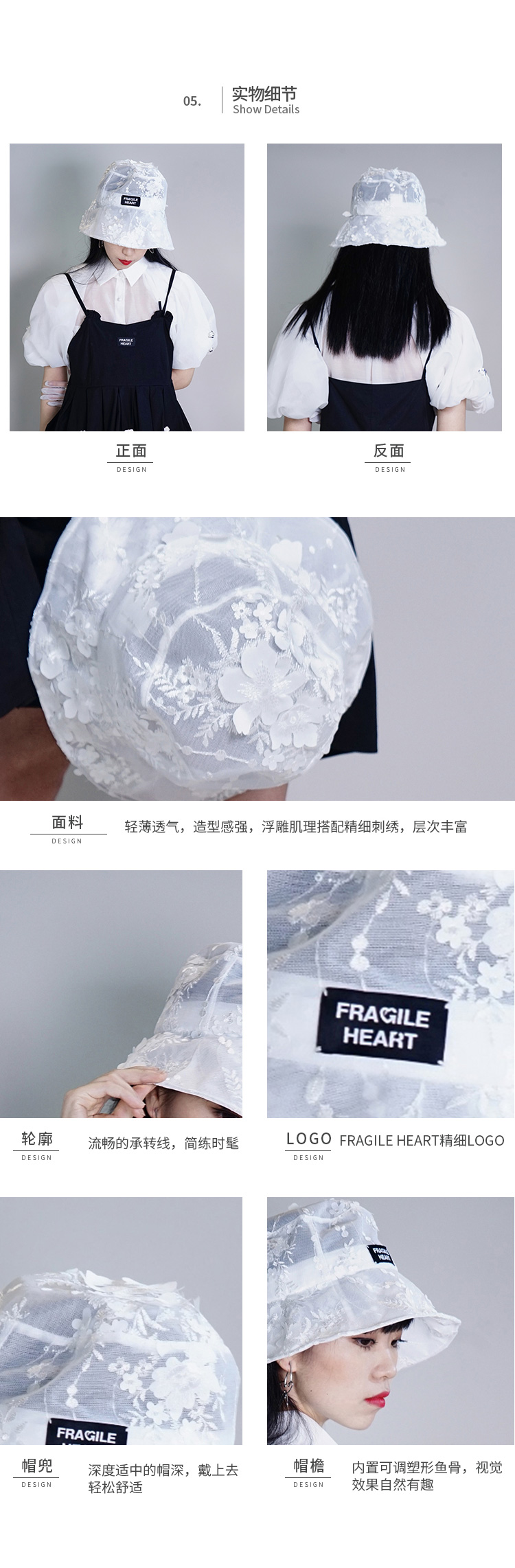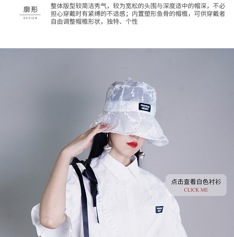 fragileheart原创刺绣花朵渔夫帽秋薄百搭白蕾丝花边防晒遮阳帽女
