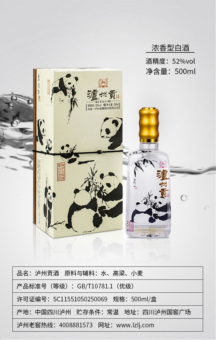 【头曲官旗】52度泸州贡酒(保护大熊猫爱心纪念版)500ml*6