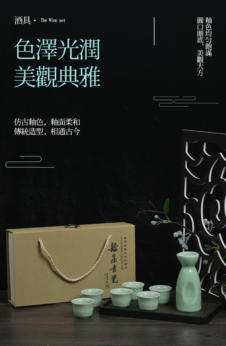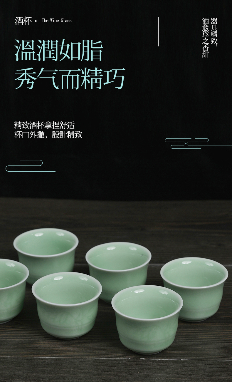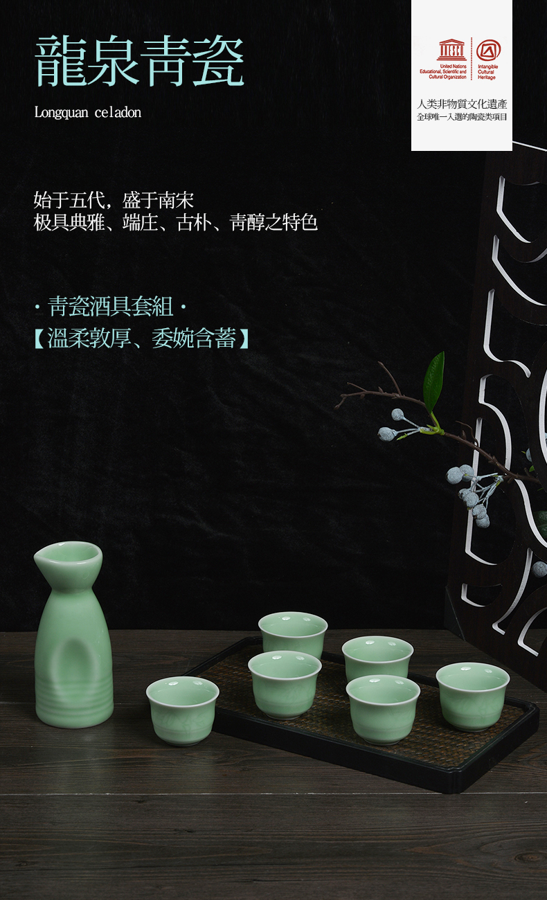 龙泉青瓷茶具 XH8004 福寿康宁一壶六杯酒具