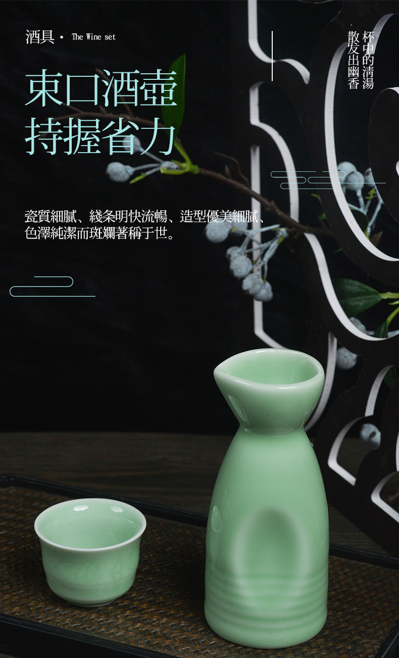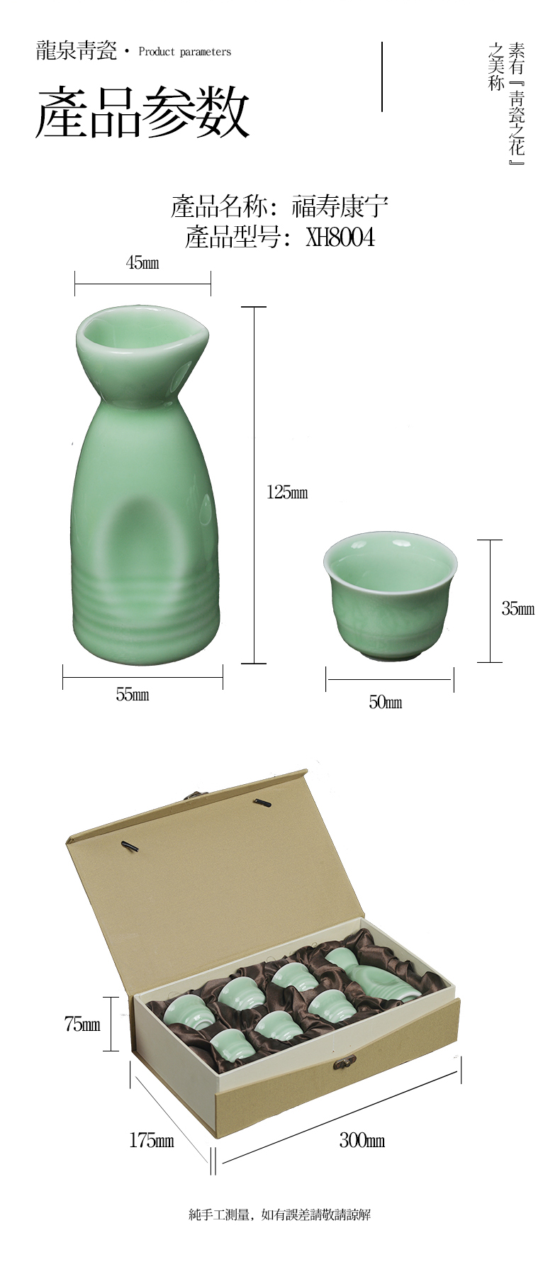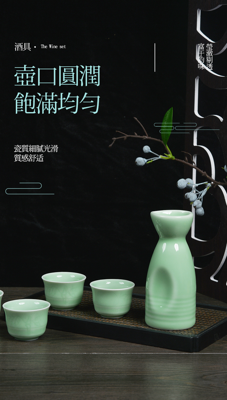 龙泉青瓷茶具 XH8004 福寿康宁一壶六杯酒具