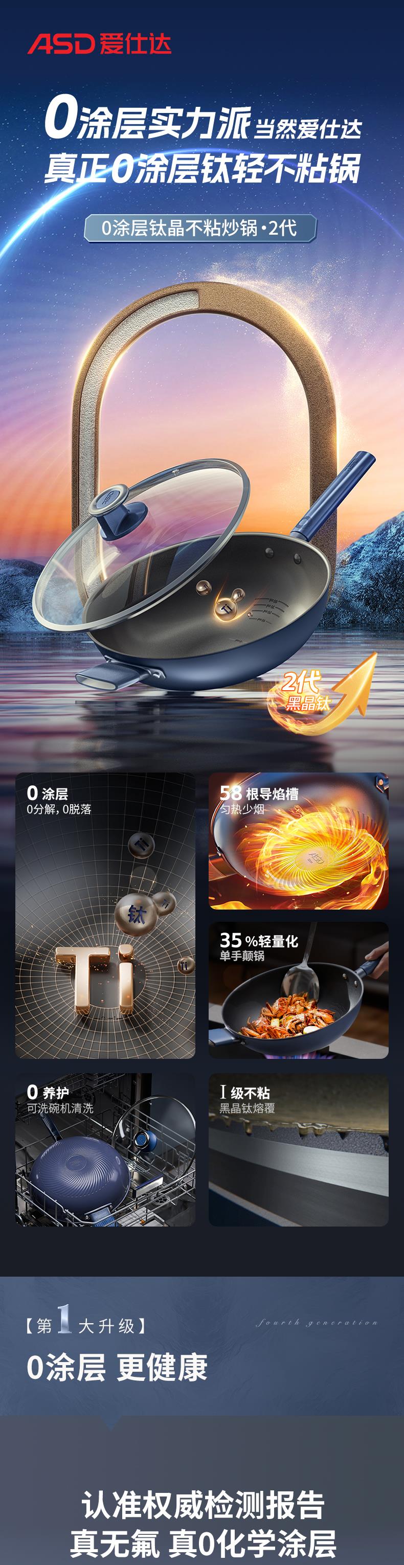 【自营】 爱仕达 0涂层钛晶不粘炒锅 32cm