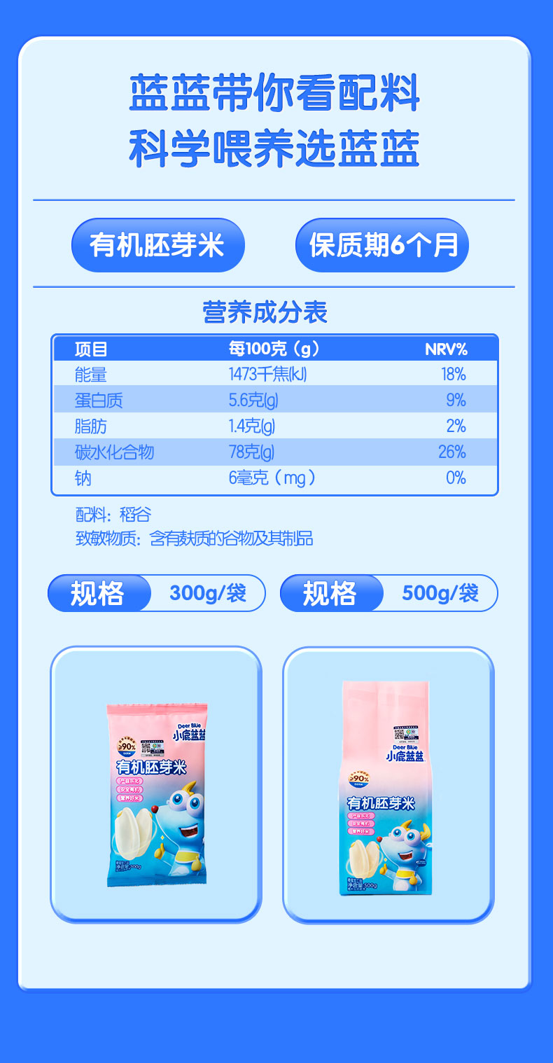 【任选专区】 【8月+】小鹿蓝蓝_有机胚芽米/300g