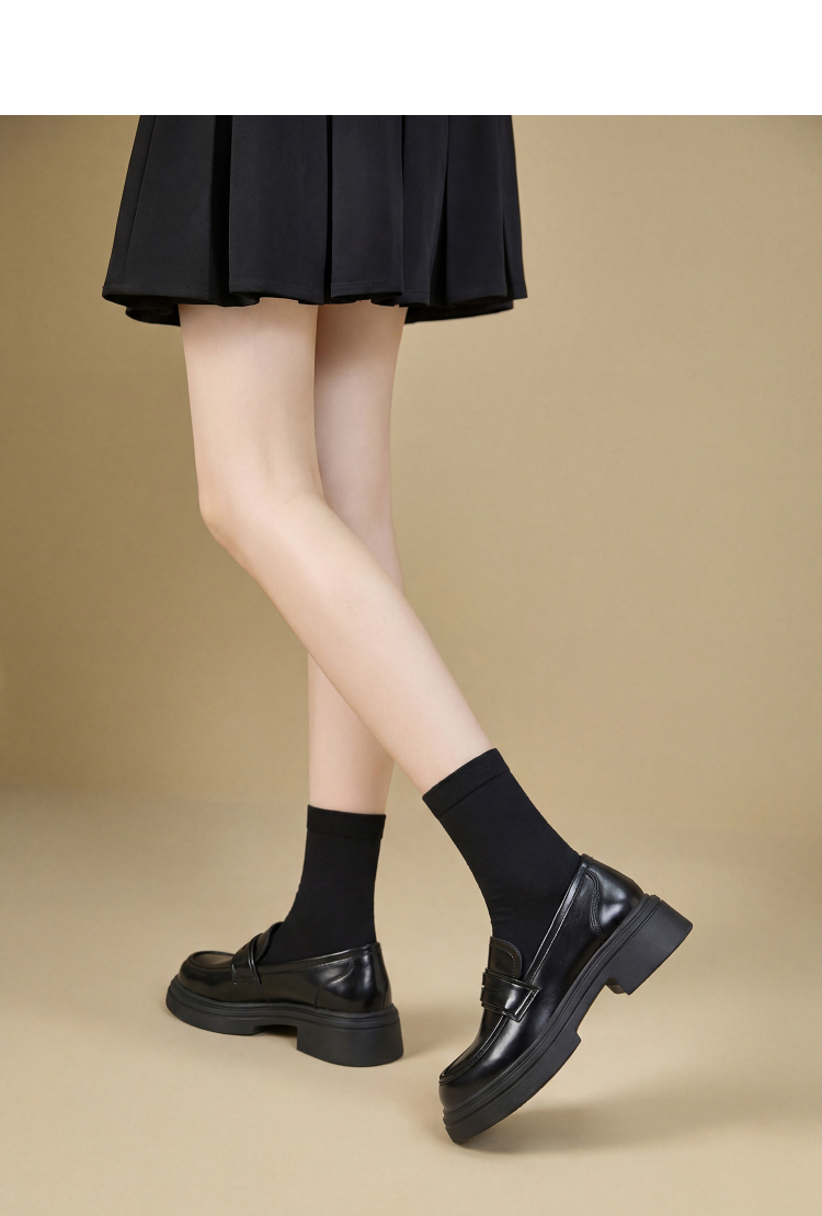 西遇厚底乐福鞋女鞋2026春季新款英伦风JK小皮鞋软面黑色通勤单鞋V0166239
