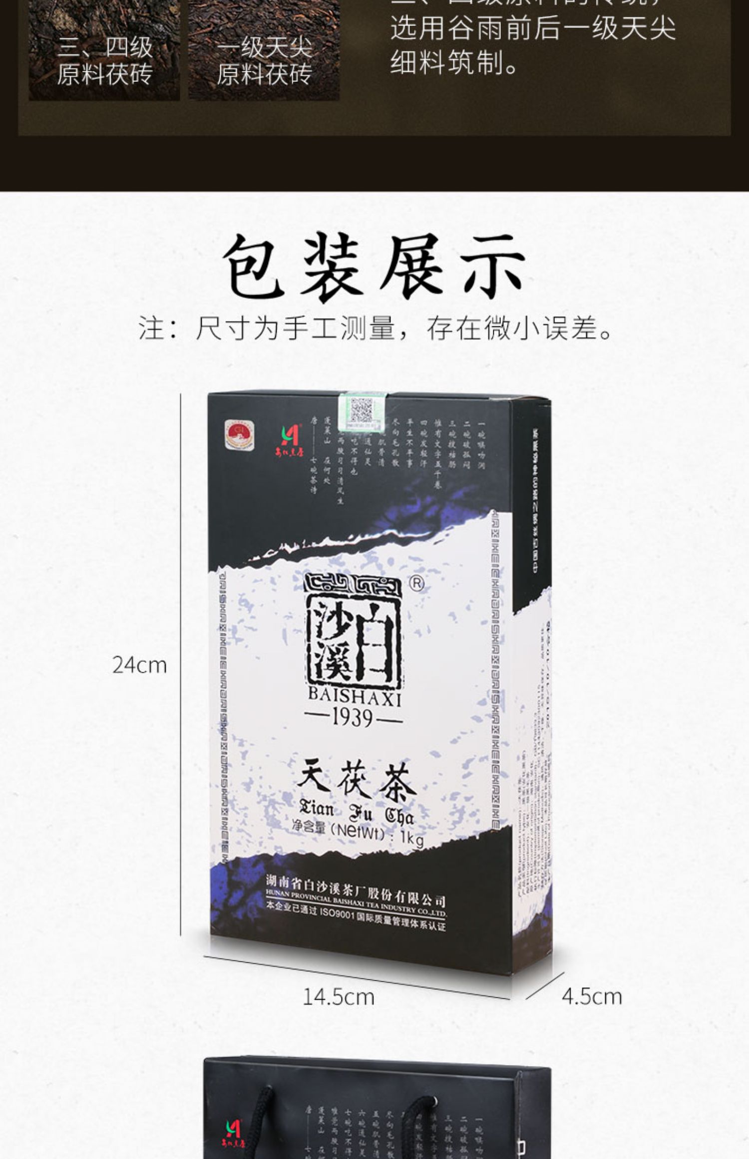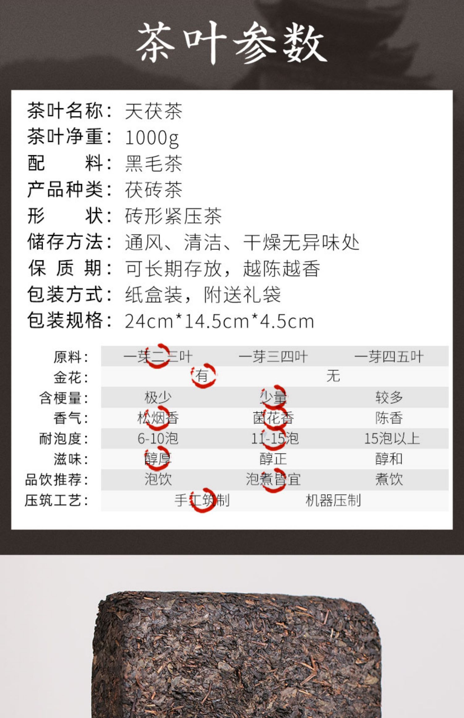 2022年白沙溪金花茯砖茶天尖茶正宗茯茶手筑 天茯茶1kg