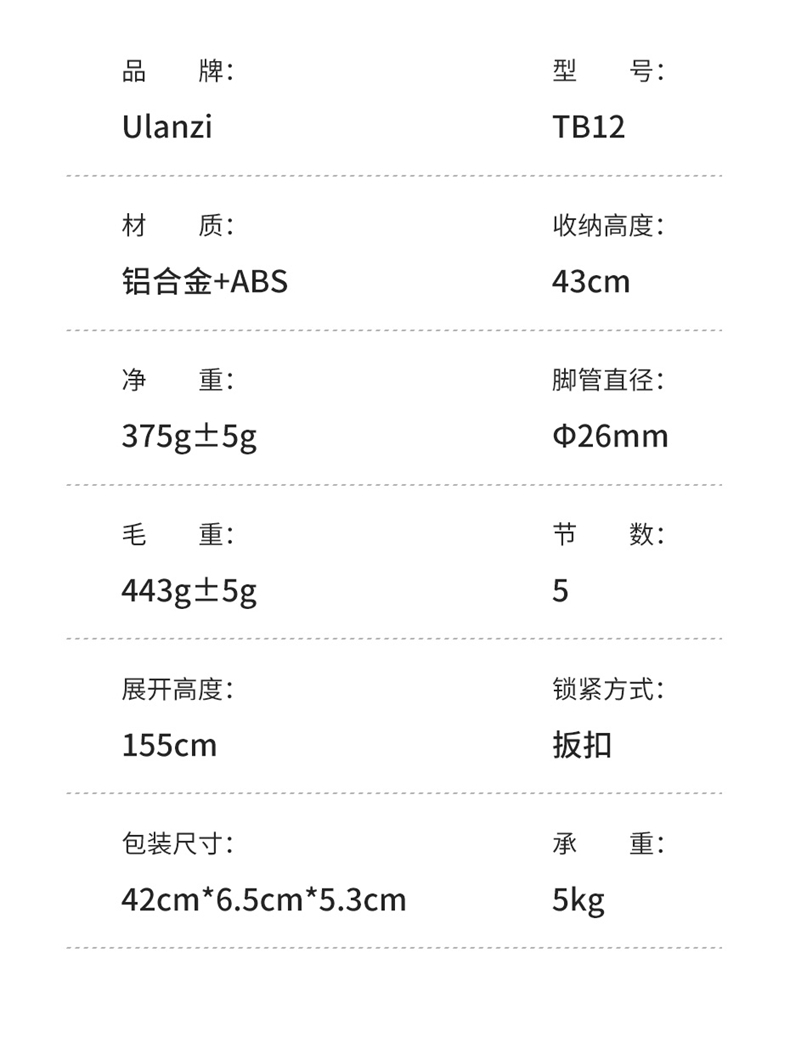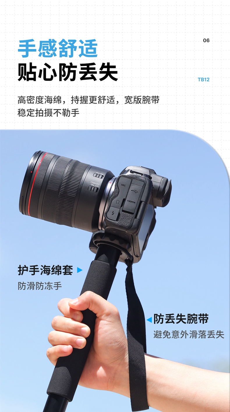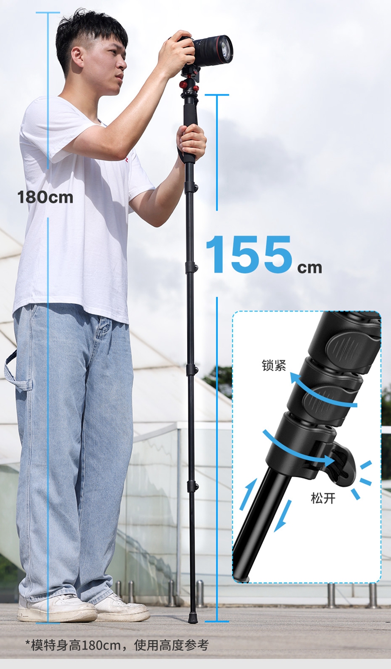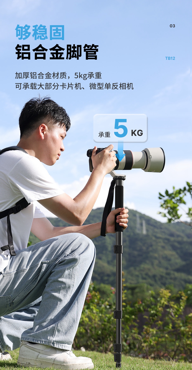 Ulanzi优篮子TB12 单反相机1.5米板扣式独脚架微单专业单脚架摄影摄像vlog户外拍摄录像支架铝合金可伸缩支架