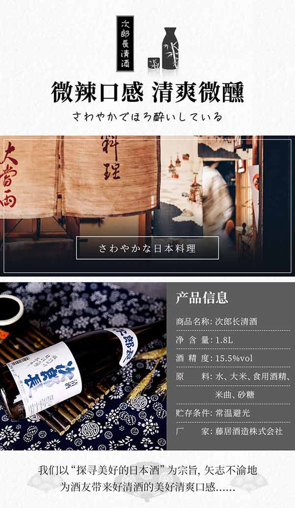 【新酒鉴评会金奖】次郎长清酒 日本原瓶进口 15.5%vol