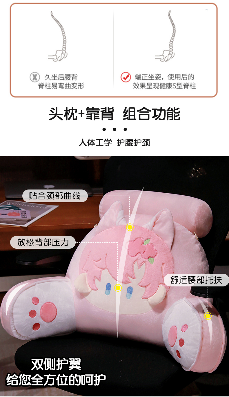 自然醒二次元崽崽拥抱式腰靠久坐护腰汽车座椅靠垫靠背宿舍沙发坐椅靠枕腰枕QYL