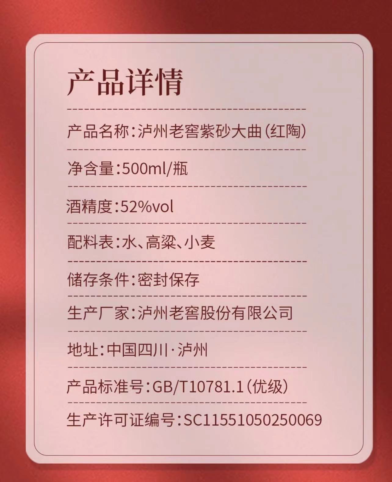 【自营】泸州老窖 紫砂大曲52度 500ml*2 两瓶装 浓香型高度超市白酒礼盒装