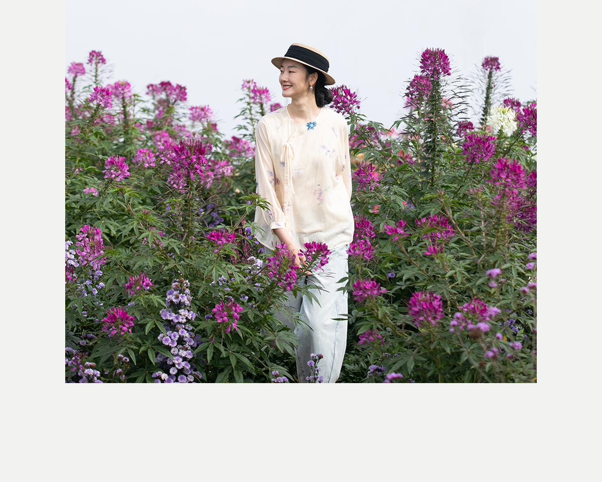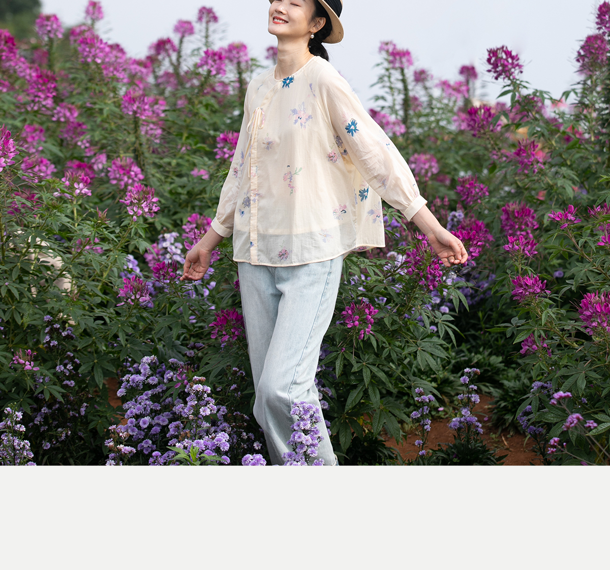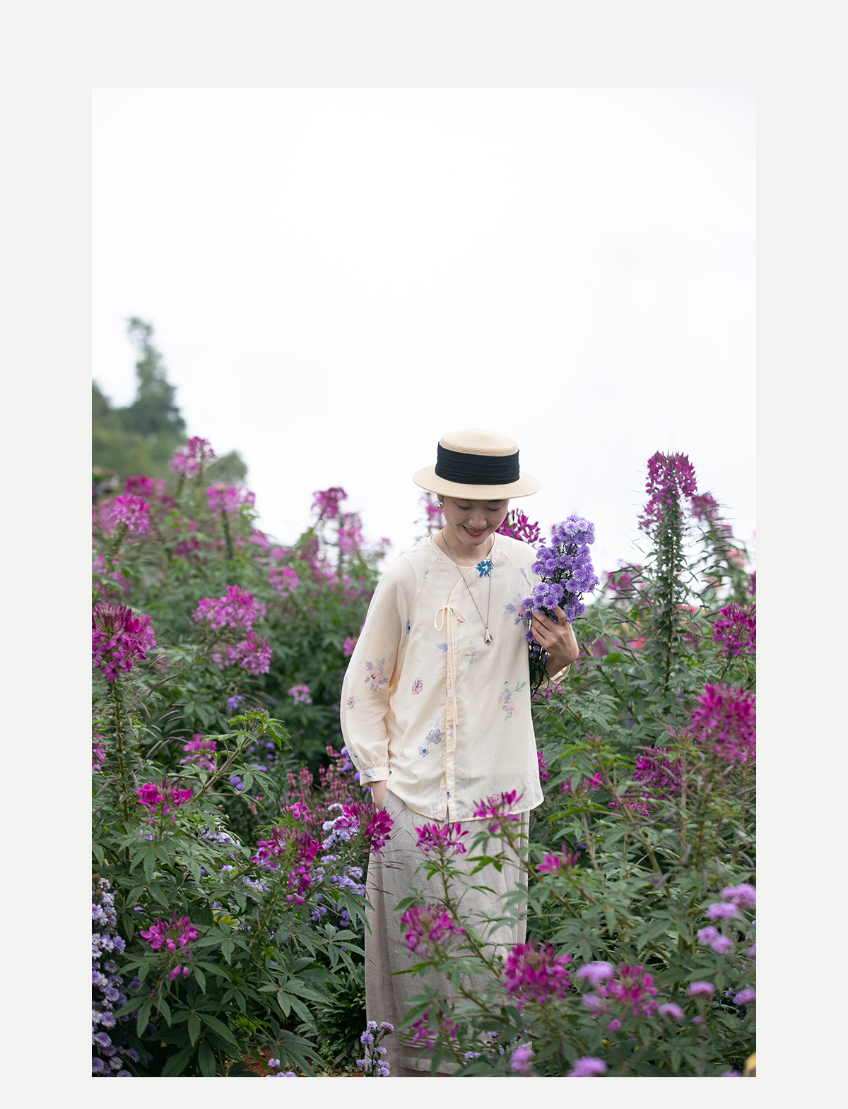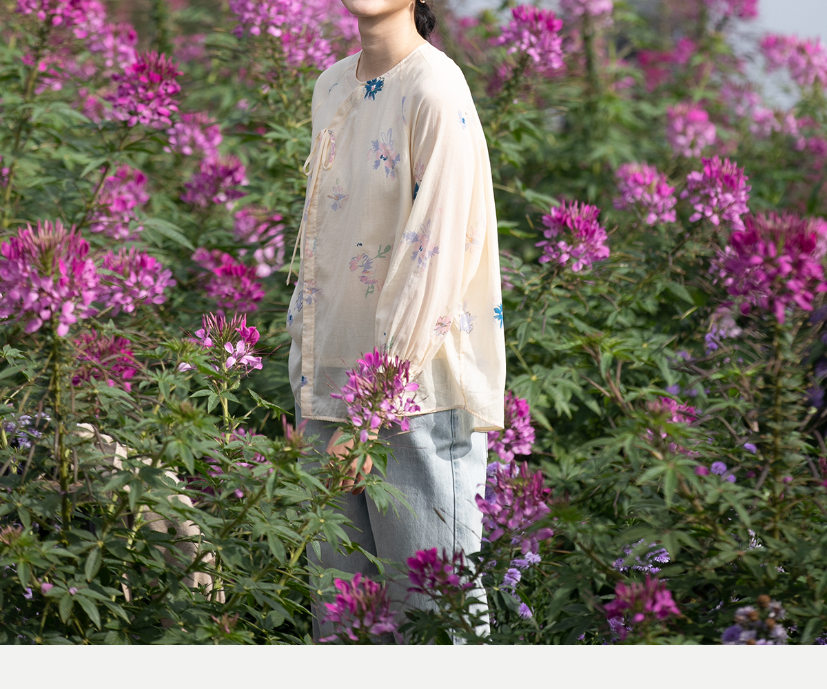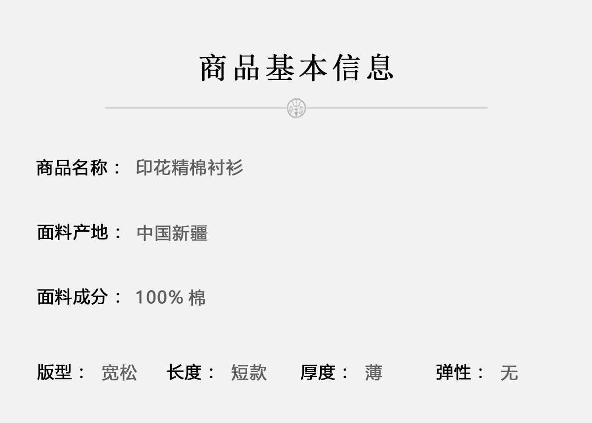 牧衣游原创 印花精棉衬衫女新款纯棉轻薄文艺偏襟中式风小衫 清浅