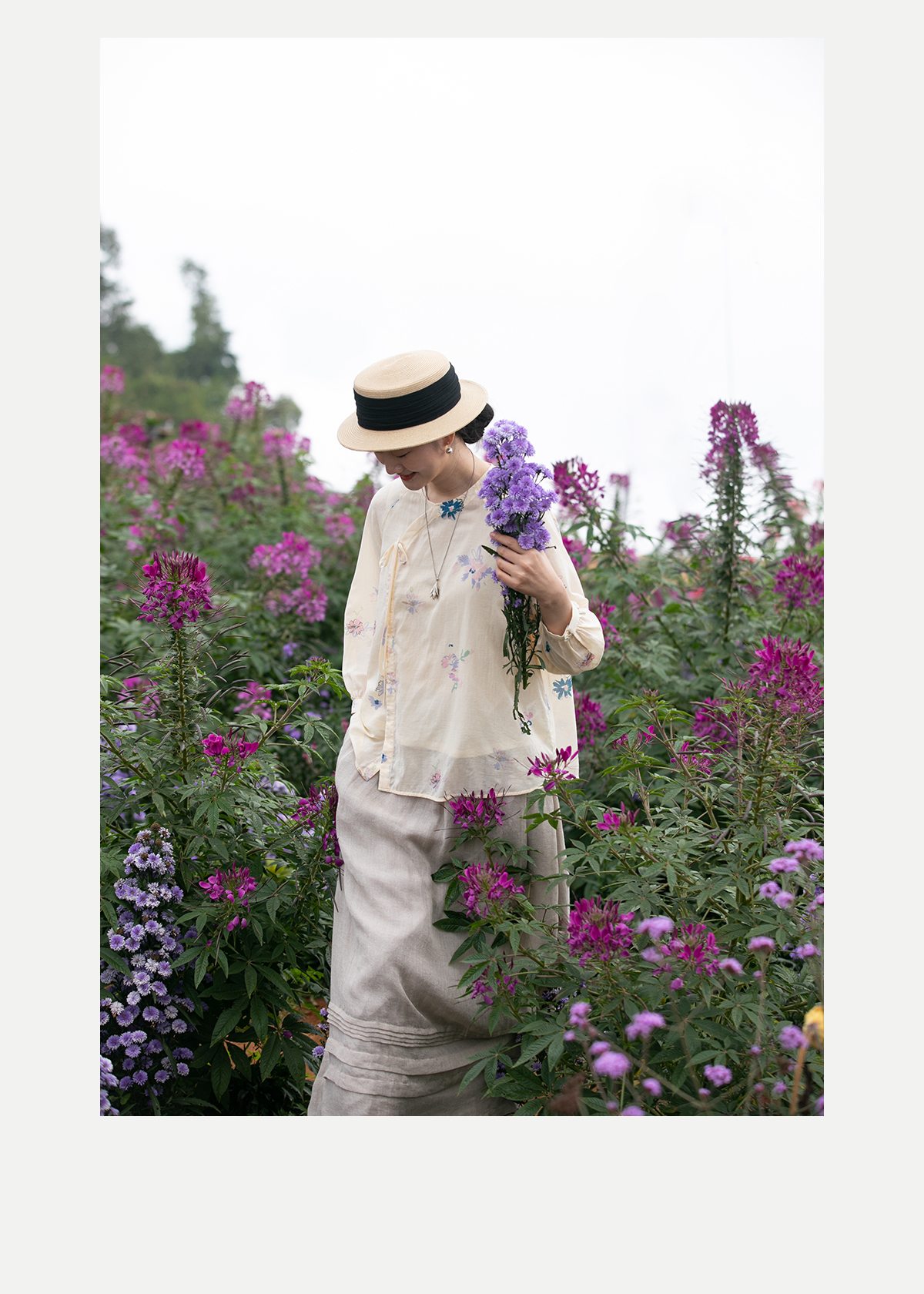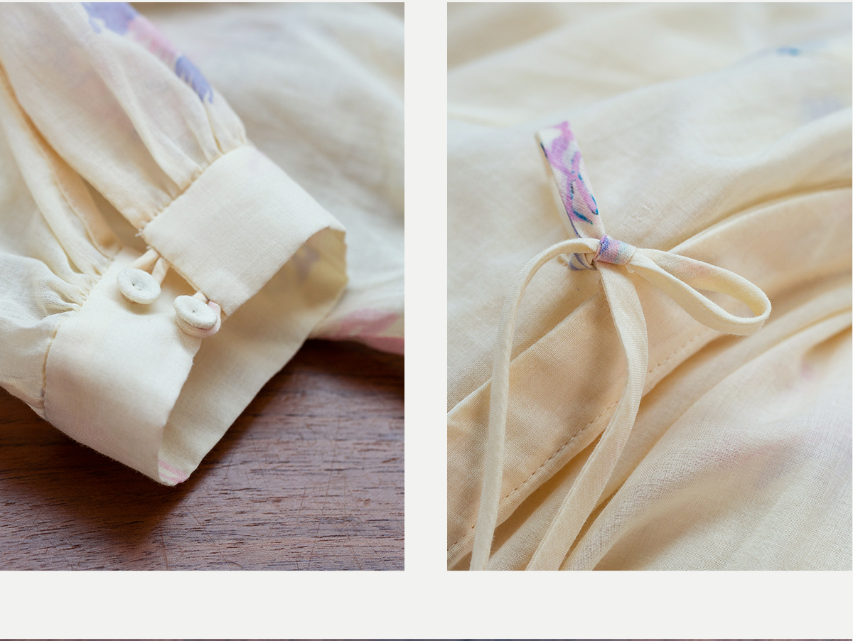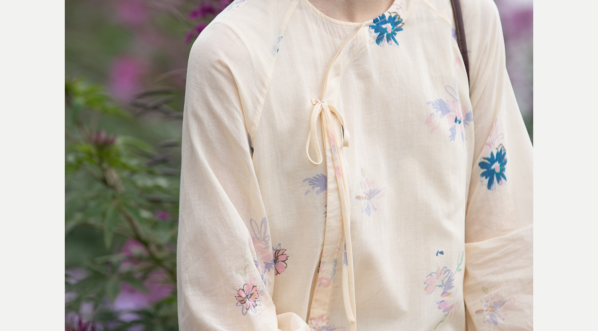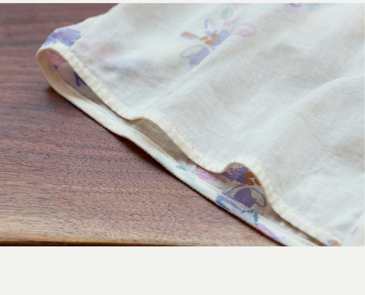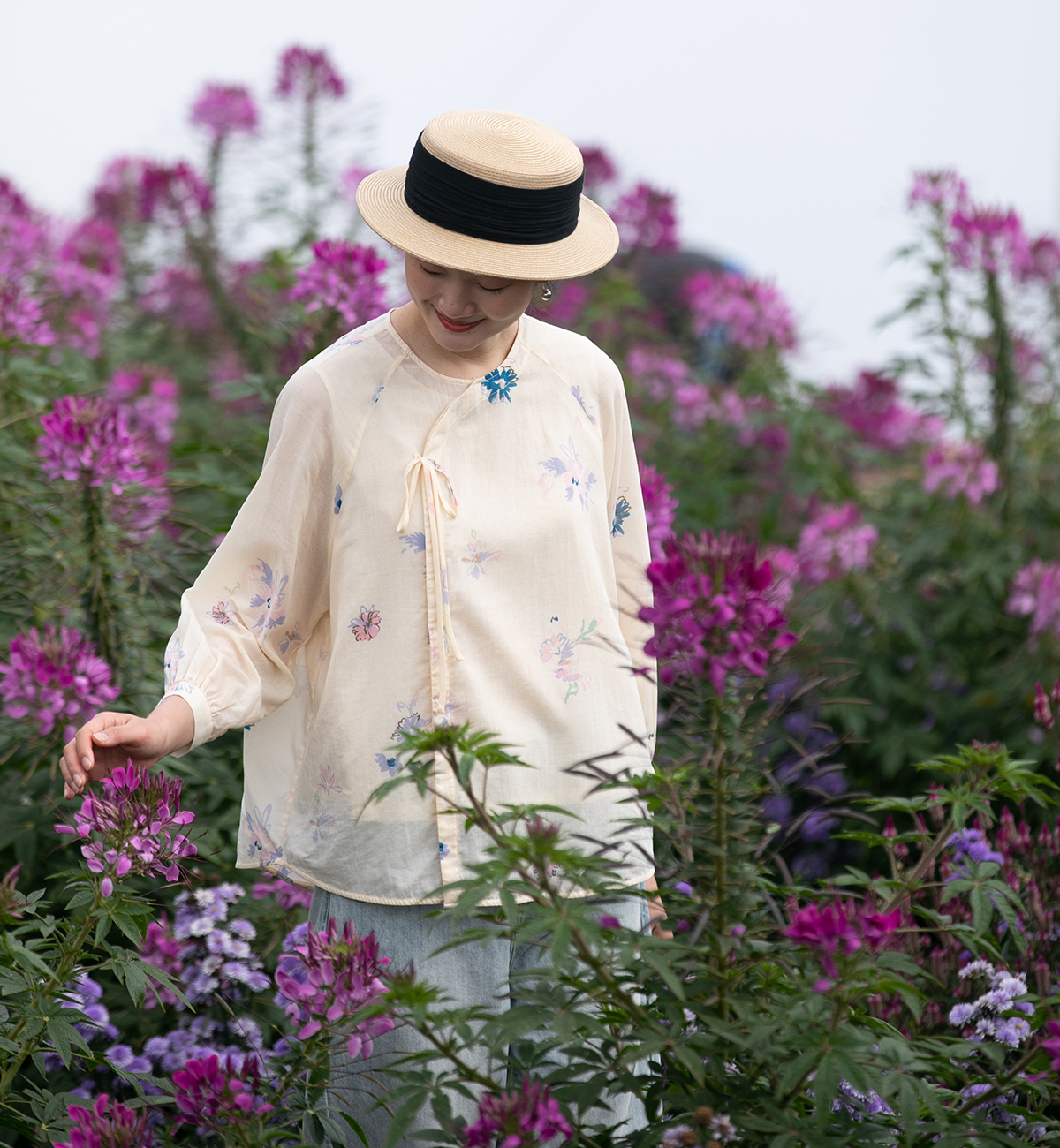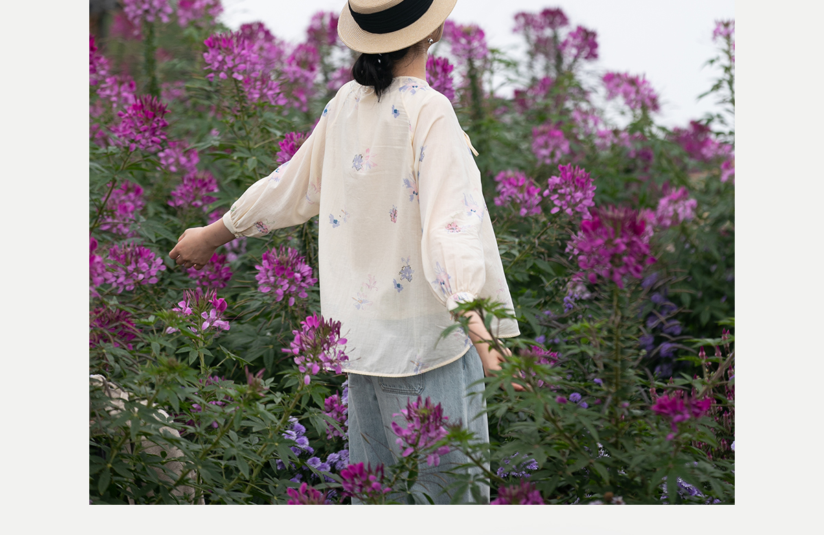 牧衣游原创 印花精棉衬衫女新款纯棉轻薄文艺偏襟中式风小衫 清浅