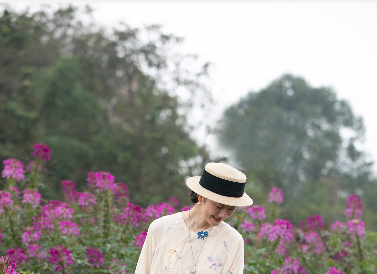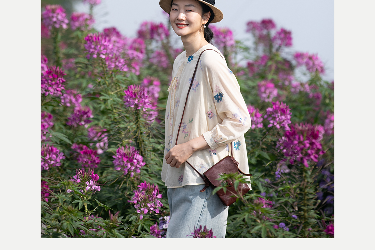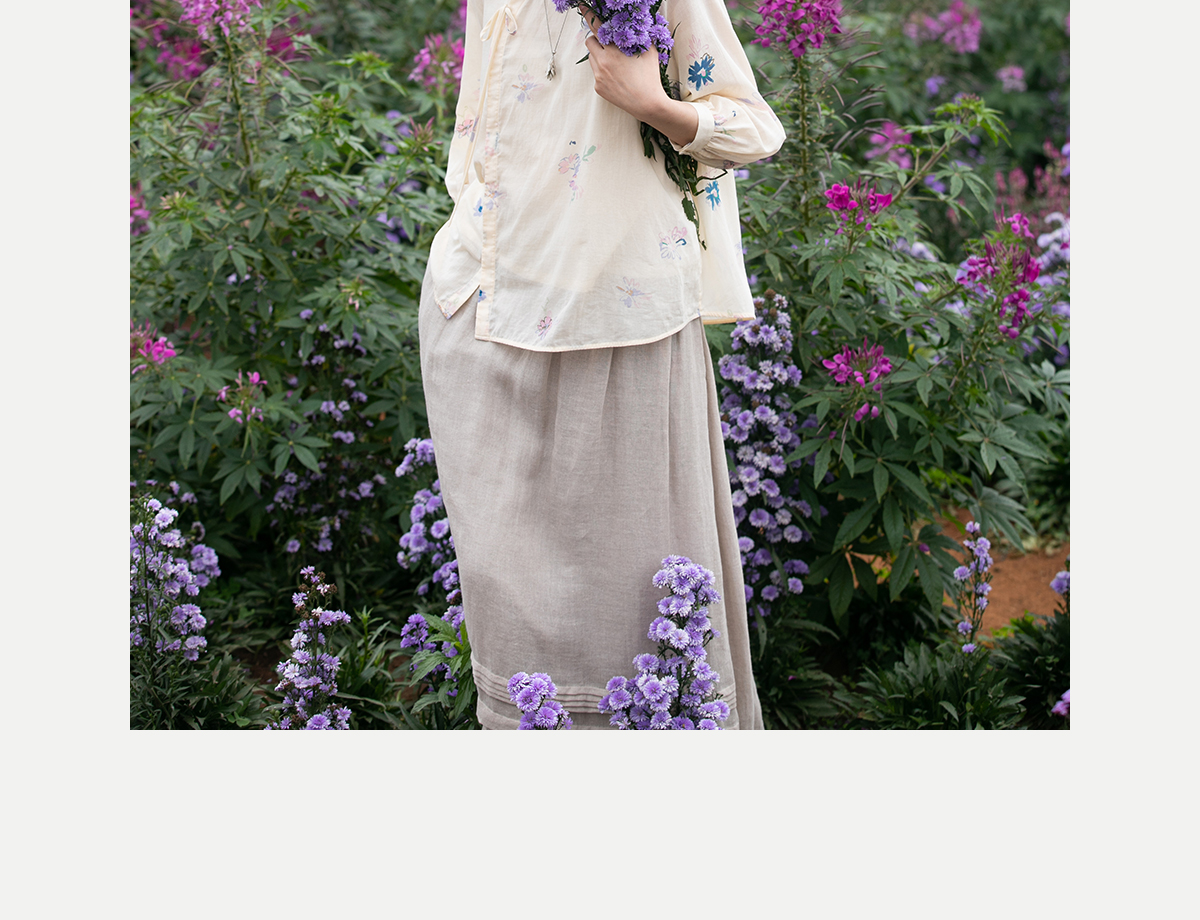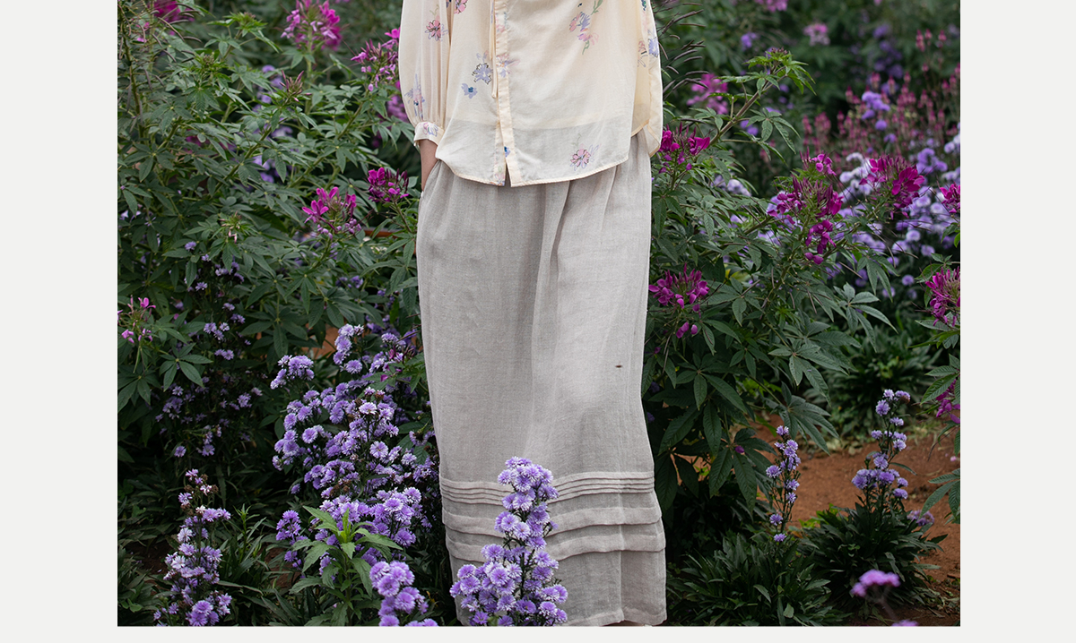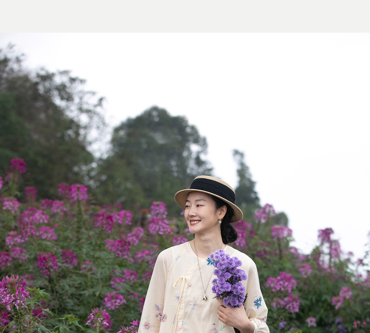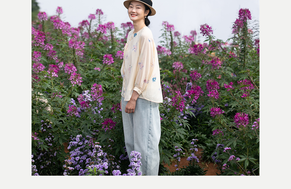 牧衣游原创 印花精棉衬衫女新款纯棉轻薄文艺偏襟中式风小衫 清浅