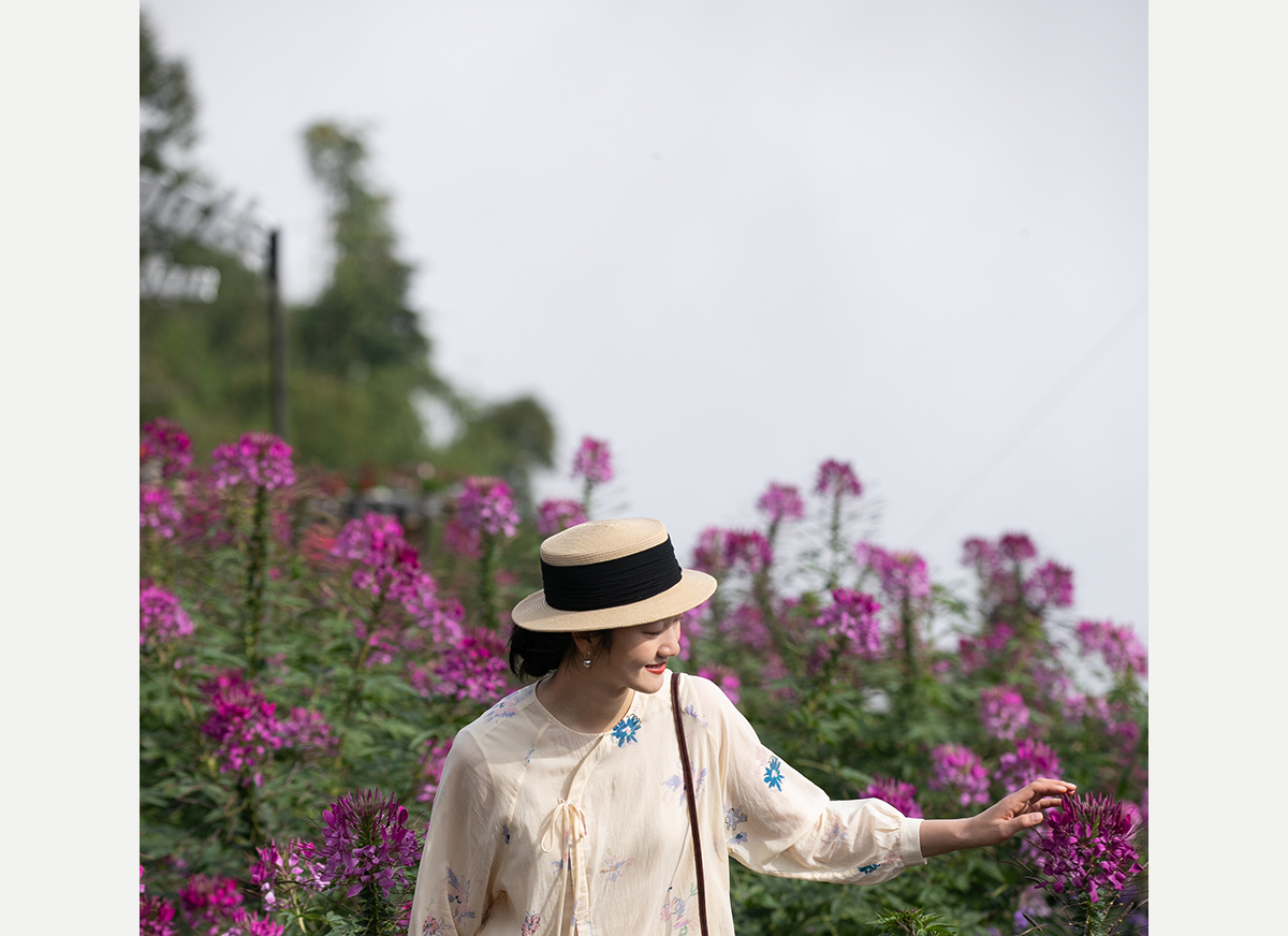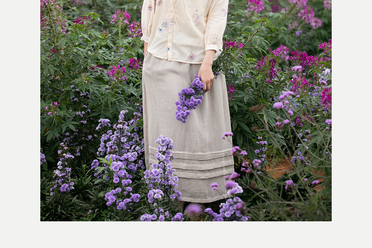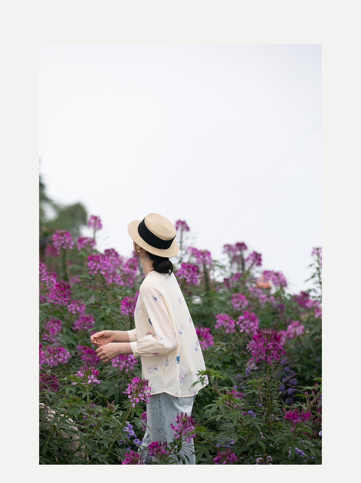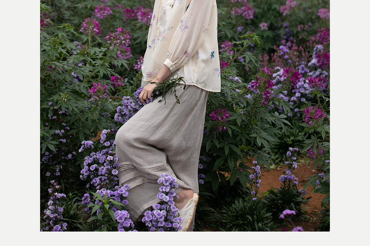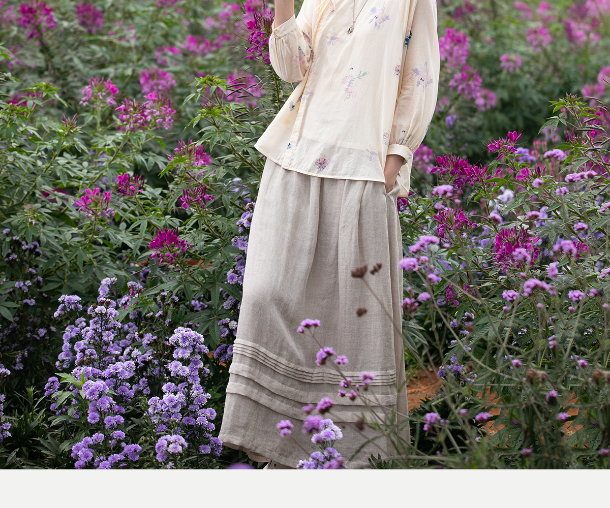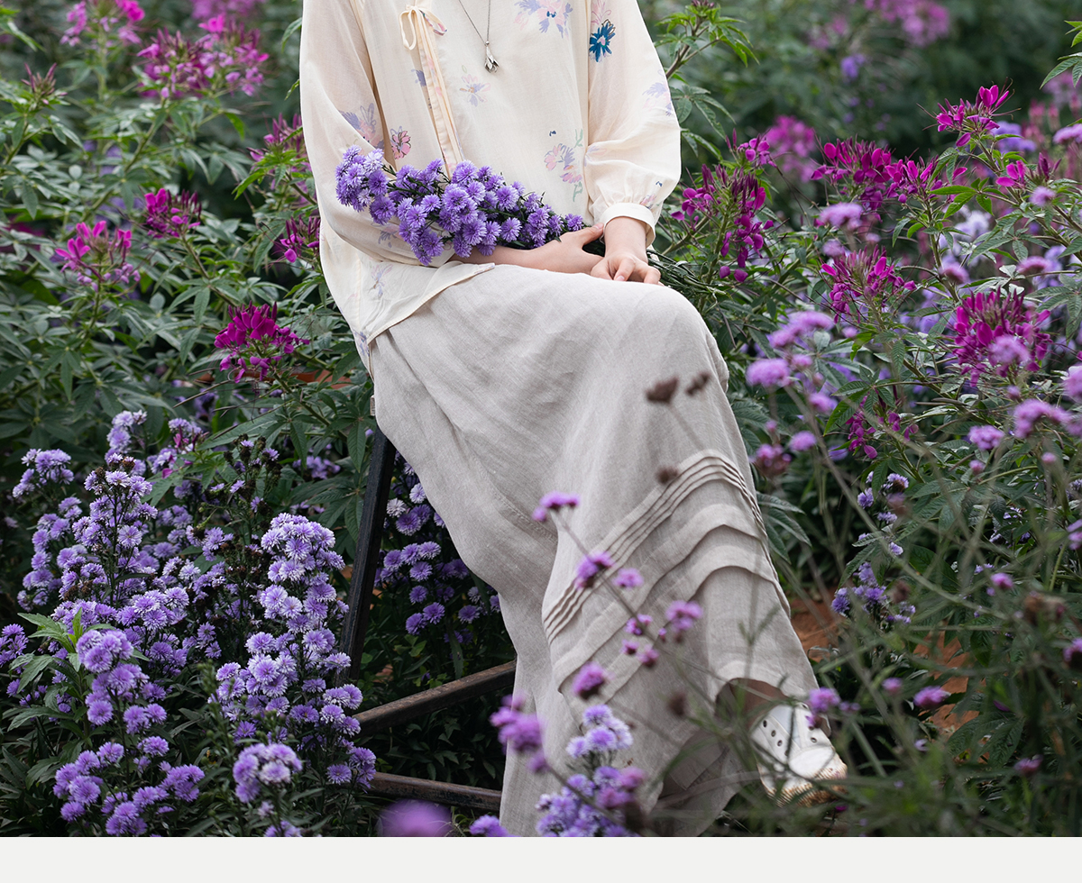 牧衣游原创 印花精棉衬衫女新款纯棉轻薄文艺偏襟中式风小衫 清浅